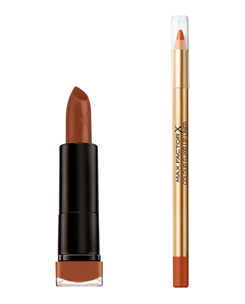 Пакет Colour Elixir от Max Factor включает губную помаду Colour Elixir Matte и контурный карандаш для губ Colour Elixir. Губная помада обеспечивает матовое покрытие с бархатистым ощущением благодаря своей формуле, содержащей масла и масла-основы для оптимального увлажнения. Она обещает заметно улучшить состояние губ за семь дней благодаря своей инновационной эликсирной формуле. Контурный карандаш позволяет определить и подчеркнуть форму губ, дополняя эффект помады. Среди его характеристик: использование ультратонких пигментов, технология Flex, сквален и витамины A, E и C, а также шелковые протеины в составе.