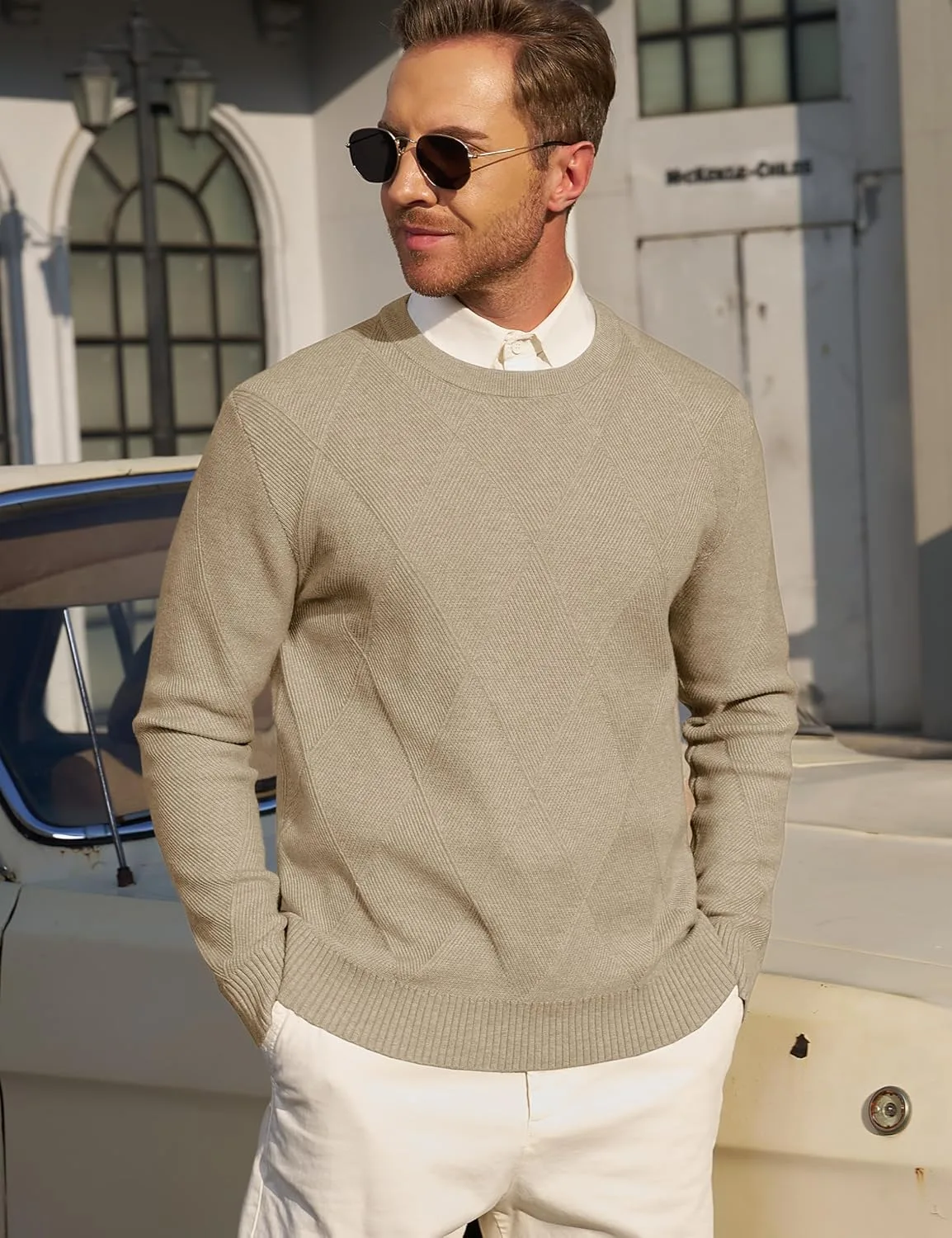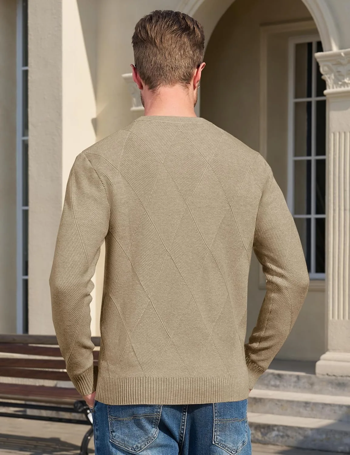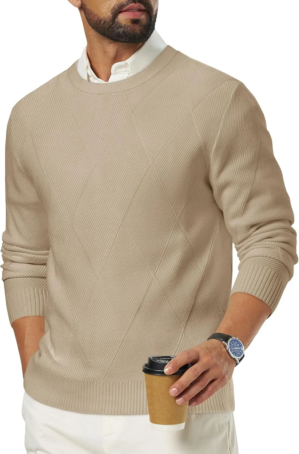 Материал: Мужской свитер изготовлен из высококачественной смесовой полиэстерной ткани, которая теплая и приятная на ощупь. Дизайн: Классический вязаный круглый вырез горловины, ребристые манжеты и нижний край для тепла и комфорта; ромбовидный узор одновременно модный и повседневный. Сочетание: Мужские пуловеры можно носить как самостоятельно, так и в сочетании с куртками, верхней одеждой и спортивными пиджаками, создавая модный и повседневный осенне-зимний образ. Повод: Вязаные свитера с круглым вырезом подходят для повседневной носки, уличной моды, деловой одежды, отдыха, свиданий и неформальных мероприятий на открытом воздухе — идеально подходят для холодной осени и зимы. Совет: Можно стирать в машинке, не беспокойтесь. Для выбора оптимального размера, пожалуйста, обратитесь к таблице размеров.