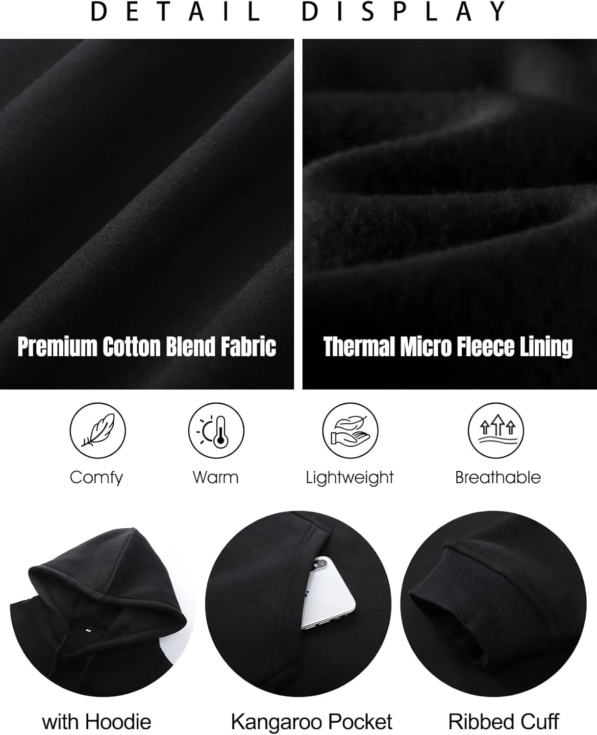 【Универсальное сочетание】Мужская флисовая толстовка с капюшоном, пуловер, толстовка с капюшоном для мужчин, легко надевается поверх простых футболок и маек и идеально сочетается с различными нарядами, от классических джинсов до спортивных штанов или курток. Модная толстовка идеально подходит для того, чтобы быстро надеть и отправиться куда угодно.