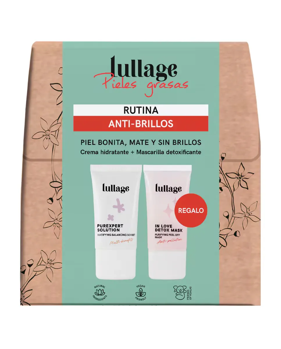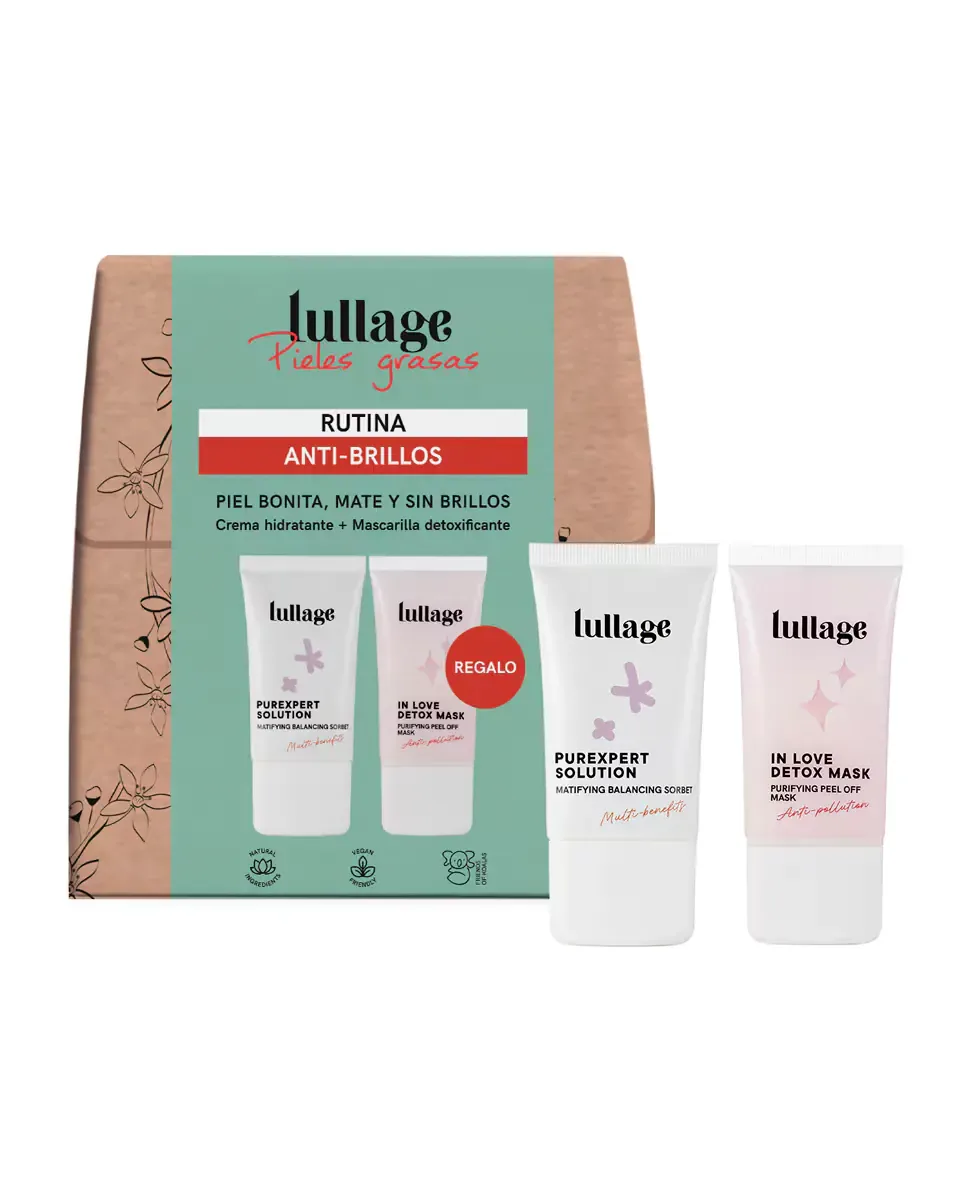 Набор Lullage «Анти-блеск» предназначен для жирной и комбинированной кожи. Включает два продукта: Purexpert Solution и маску In Love Detox. Purexpert Solution - это увлажняющий крем, содержащий 86% натуральных ингредиентов и активных себорегулирующих компонентов. Его текстура сорбета помогает уменьшить расширенные поры и обеспечивает матовое, ровное и увлажненное покрытие. Рекомендуется использовать ежедневно утром и вечером после очищения кожи. Маска In Love Detox очищает и насыщает кожу кислородом благодаря высокому содержанию минералов и антизагрязняющему действию. После снятия маски кожа выглядит матовой, более мягкой и упругой. Оба продукта веганские, бережно относятся к коже и природе, прошли дерматологические и офтальмологические тесты. Этот набор предлагает комплексное решение для борьбы с блеском и улучшения внешнего вида кожи.