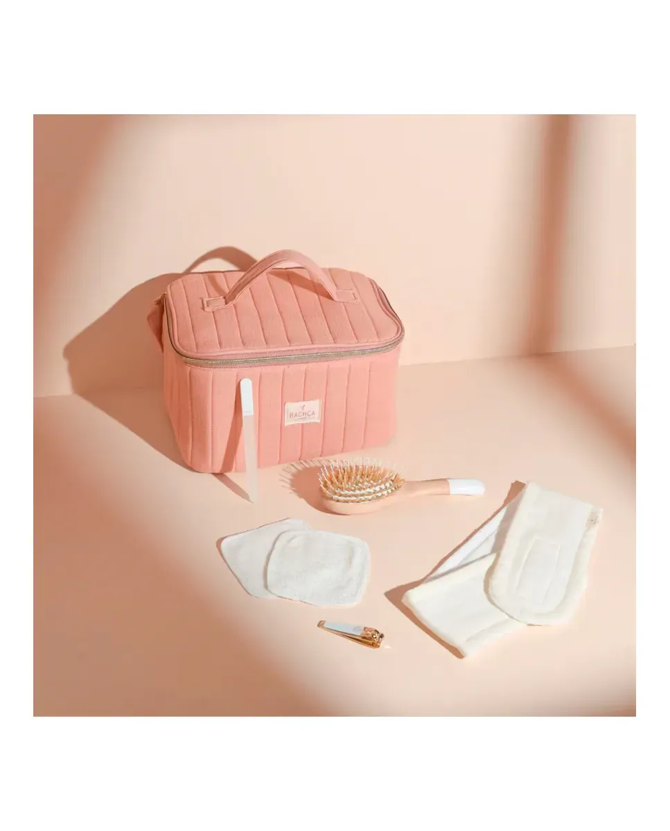 Несессер All in One от бренда Bachca - это подарочный набор, предназначенный для ухода за женщинами. В него входят расческа для волос, ободок, кусачки для ногтей, пилочка для ногтей и ватные диски. Он обеспечивает все необходимое для поддержания организованной и доступной бьюти-рутины. Его функциональный и элегантный дизайн делает его подходящим как для использования дома, так и для путешествий.
