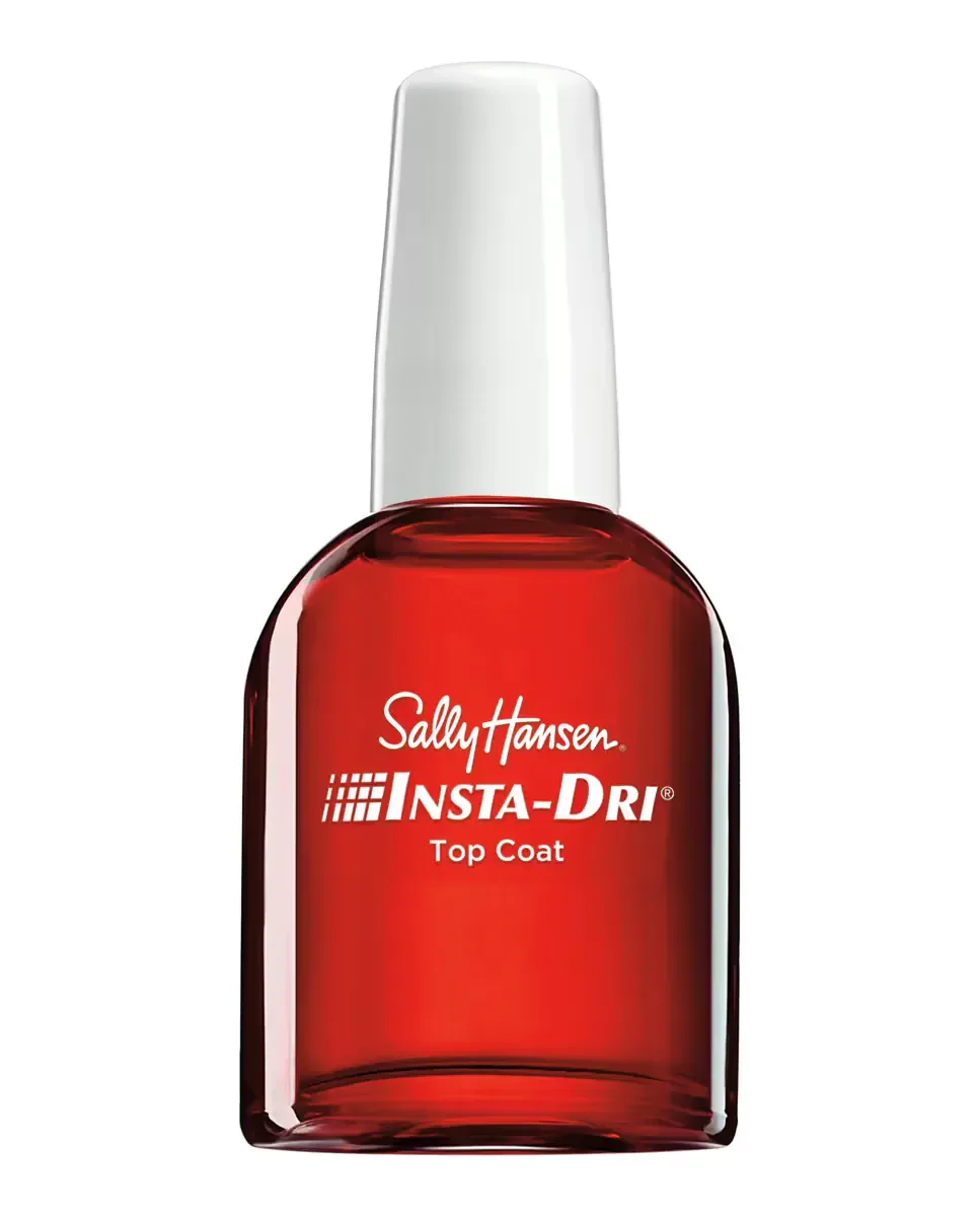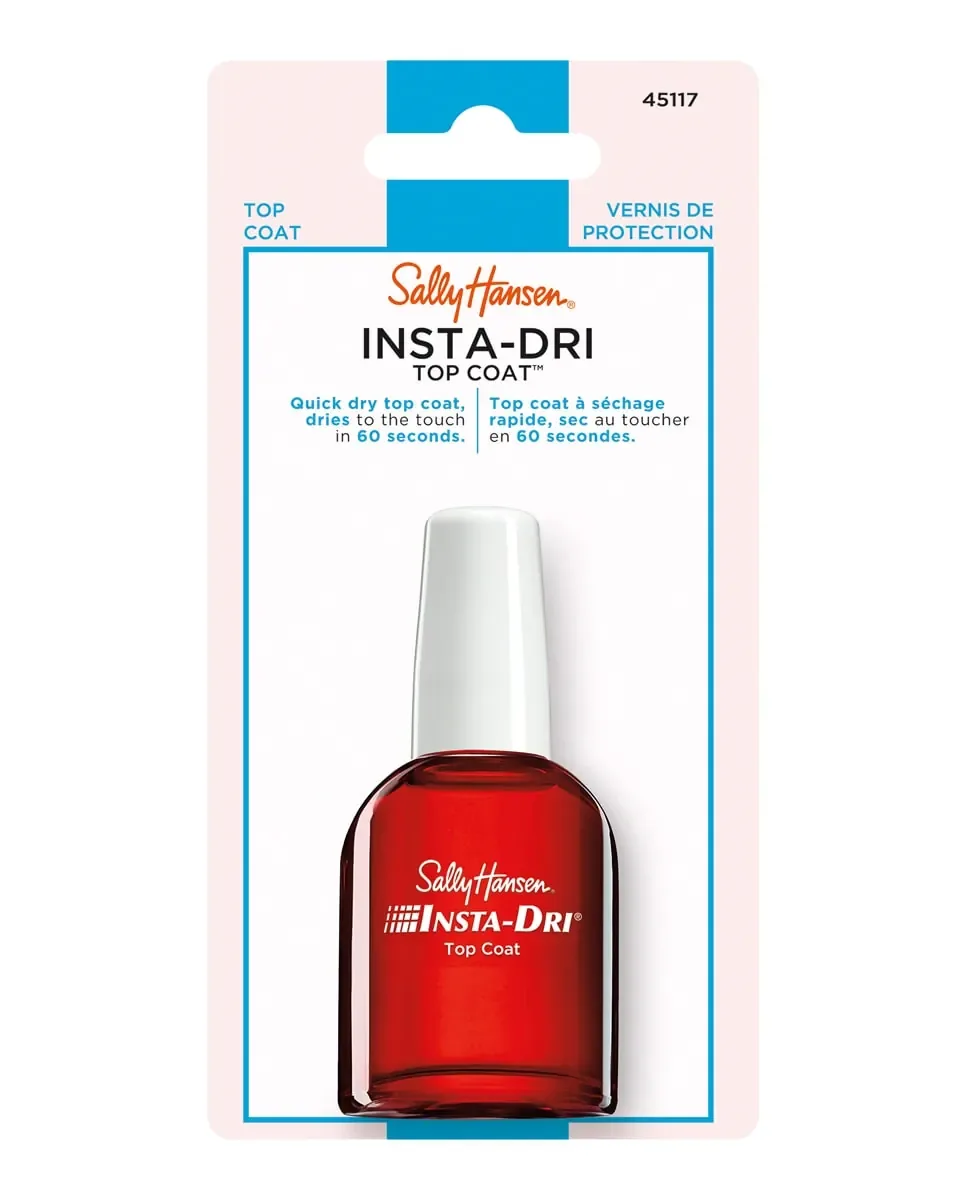 Top Coat Insta-Dri от Sally Hansen - это верхнее покрытие, которое обеспечивает защитный слой и быстрое высыхание лака для ногтей. Его уникальная формула, обогащенная акриловыми полимерами, позволяет закрепить и высушить любой цветной лак за считанные секунды, при этом он становится сухим на ощупь через 30 секунд. Включает двойной УФ-фильтр, который защищает цвет, обеспечивая более длительную яркость маникюра. Рекомендуется сначала нанести цветной лак, дать ему высохнуть, а затем нанести слой Top Coat Insta-Dri.