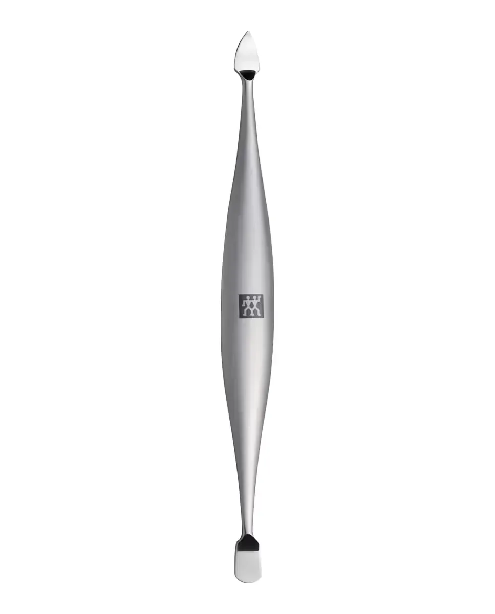 Премиальный двусторонний инструмент для ногтей от Zwilling серии TWINOX имеет матовую сатинированную ручку длиной 12,5 см. Включает два функциональных конца: один конец предназначен для очистки ногтей, а противоположный для удаления кутикулы. Изготовлен из цельного куска высококачественной нержавеющей стали, что обеспечивает прочность и долговечность. Устойчив к коррозии, подходит для влажной среды. Точная обработка краев позволяет выполнять работу тщательно и продлевает срок службы продукта. Этот маникюрный аксессуар унисекс.