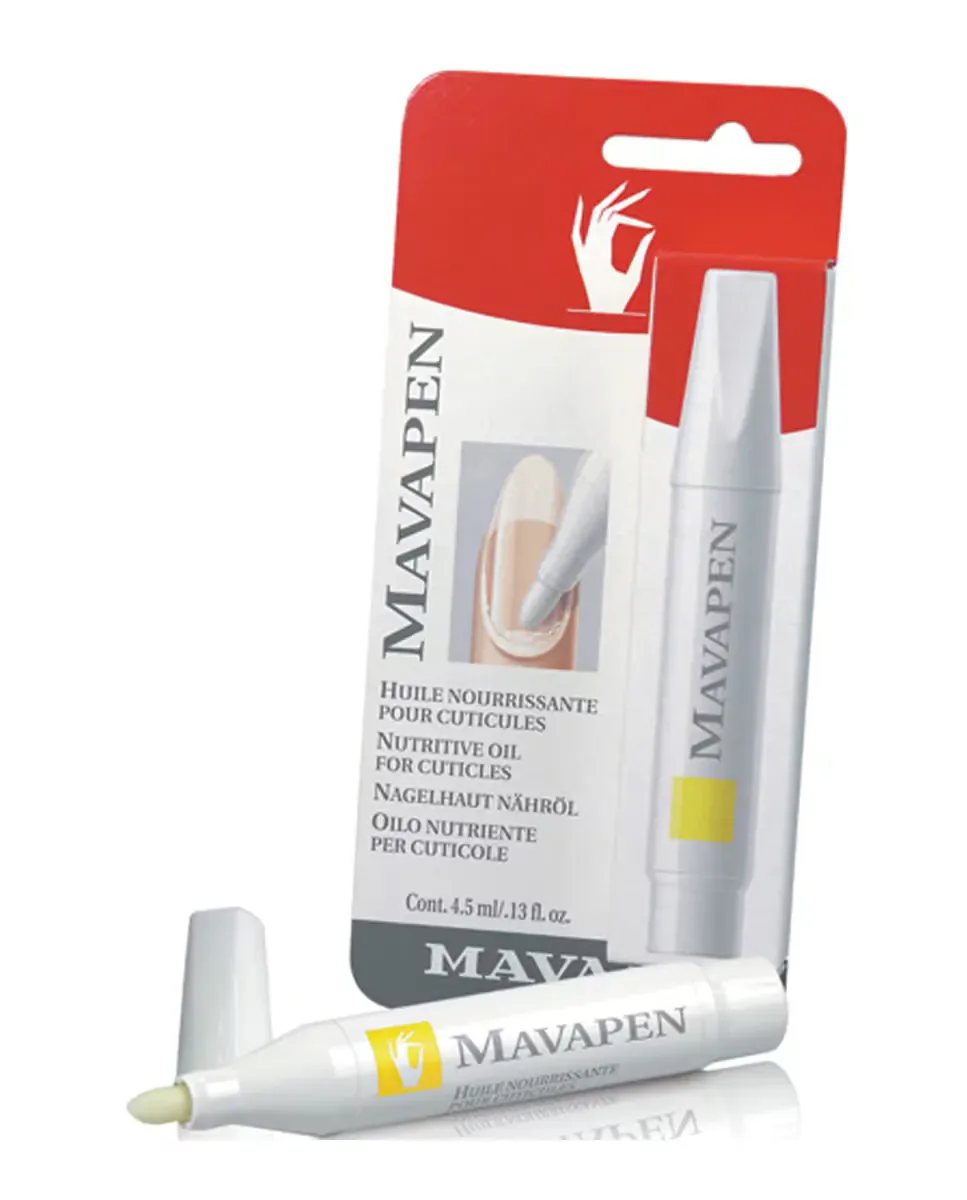 Питательное масло для кутикулы Mavapen от Mavala - это средство для ухода за ногтями и кутикулой. В комплект входит аппликатор, который позволяет точно и аккуратно наносить средство вокруг ногтевой пластины. При использовании Mavapen выделяются капли питательного масла, которое увлажняет и смягчает кожу. Средство наносится с помощью замшевого наконечника на контур ногтя и втирается в кутикулу круговыми движениями для лучшего впитывания масла. При необходимости кутикулу можно слегка отодвинуть с помощью маникюрной палочки с ватным наконечником. Любое избыточное масло с ногтей следует удалить перед продолжением маникюра. В составе масла присутствуют витамины E и F, которые помогают смягчить кожу и аккуратно отшелушить отросшую кутикулу.