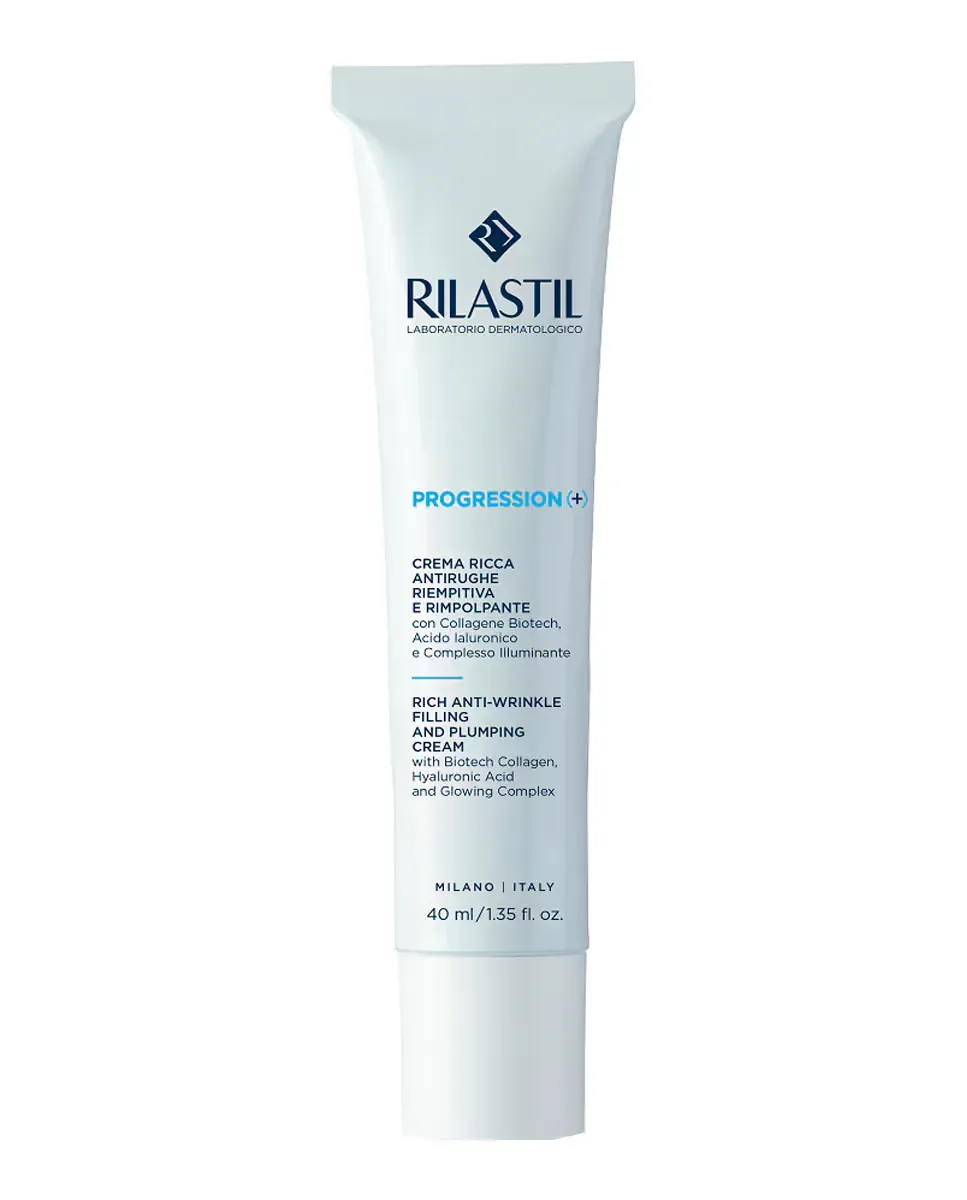 Крем для лица Rich Antiarrugas Progression () от Rilastil - это питательная терапия, которая борется с эффектами пременопаузы и менопаузы на коже, предназначенная для сухой кожи. Этот антивозрастной крем действует на морщины, дряблость, обезвоживание и отсутствие сияния. Его формула включает гиалуроновую кислоту, осветляющий комплекс и биотехнологический коллаген. Эти активные ингредиенты обеспечивают увлажнение, укрепление и улучшение сияния кожи. Было доказано значительное увеличение выработки коллагена, увлажнения, эластичности и сияния в течение 28 дней. Продукт некомедогенный, клинически протестирован и гипоаллергенен.
