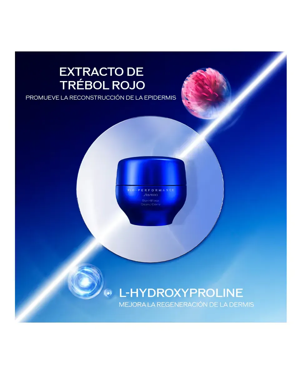 Крем Bio-Performance Skin Hiforce от Shiseido является антивозрастным средством, предназначенным для омоложения кожи изнутри. Он разработан для комбинированной и жирной кожи и подходит для женского использования. Его технология Oxyshift сочетает экстракт красного клевера, который способствует восстановлению эпидермиса, и L-гидроксипролин, который улучшает регенерацию дермы. Клинически доказанные результаты показывают, что после четырех недель использования 84% женщин отметили более упругую и улучшенную кожу. После шести недель наблюдалось увеличение эффекта заполнения на 30% и сокращение морщин на 28%. Рекомендуется наносить крем утром и вечером после очищения кожи и использования лосьонов и сывороток, равномерно распределяя его по коже.