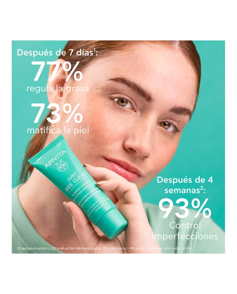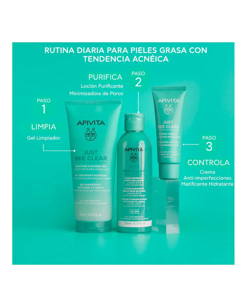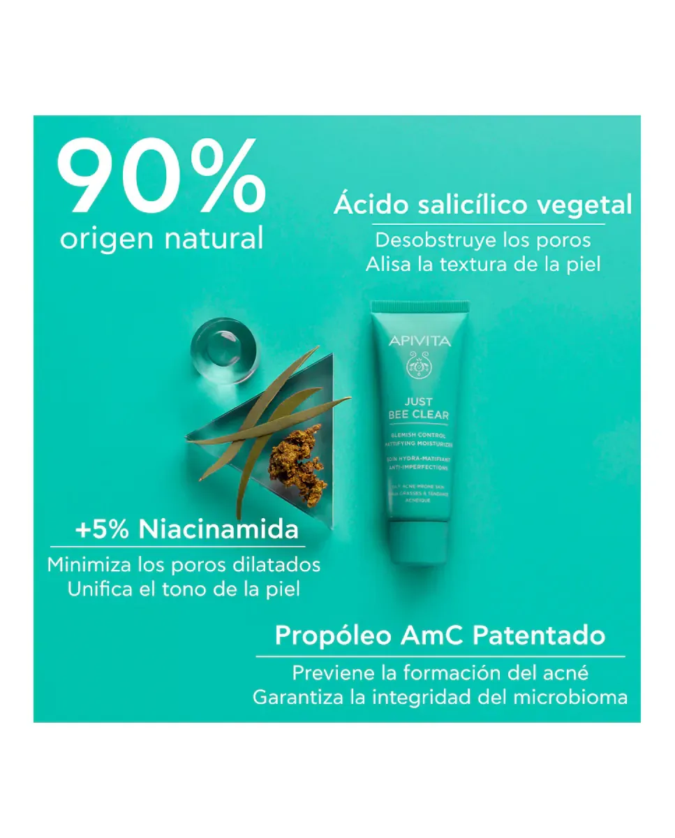 Анти-имперфекционная крем-гель Just Bee Clear от Apivita - это ультра-легкий гель-крем, разработанный для жирной кожи и кожи с тенденцией к акне. Он содержит патентованный прополис AmC и растительную салициловую кислоту, которые обеспечивают матирующий эффект и постоянное увлажнение без блеска. В его формуле присутствует высокая концентрация антимикробных молекул прополиса, которые подавляют образование биопленки бактерии C.acnes, способствуя уменьшению несовершенств. Кроме того, он содержит 5% ниацинамида, который улучшает внешний вид кожи и минимизирует видимость пор. Этот продукт регулирует жирность и контролирует несовершенства, обеспечивая ощущение комфорта для кожи. Подходит для подростков и взрослых, а также для чувствительной кожи. Представлен как некоминогеничный и нефотосенсибилизирующий продукт, подходящий для ухода за лицом, включающего очищение и тонизацию.