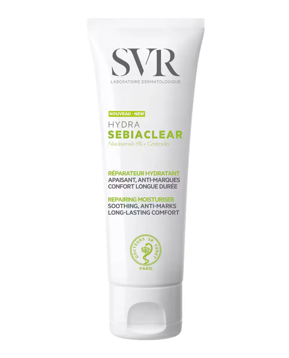 Восстанавливающий крем Hydra Sebiaclear от SVR - это увлажняющее средство, разработанное для кожи с склонностью к акне. Он обеспечивает длительное ощущение комфорта и действует как компенсирующее увлажнение. Снимает раздражение, вызванное сухостью, и восстанавливает кожу. Помогает уменьшить недостатки и следы от высыпаний. Его матовая текстура легко впитывается, оставляя нелипкий и бархатистый финиш. Подходит в качестве основы для макияжа. Можно применять утром и/или вечером на чистую кожу. Упаковка перерабатывается.