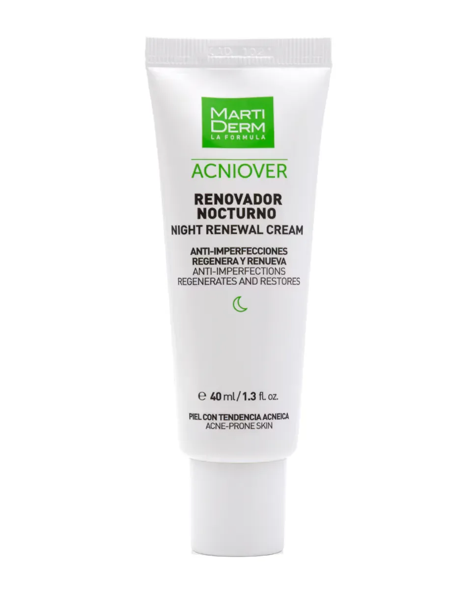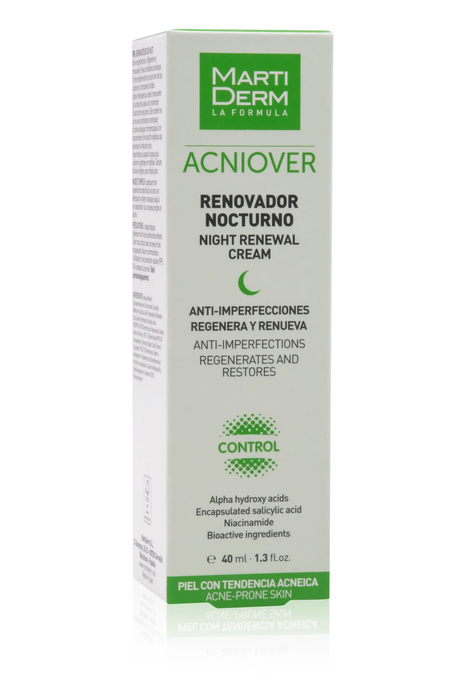 Преимущества: Ночной обновляющий крем Acniover от MartiDerm - это восстанавливающий крем для ночного ухода за кожей, склонной к акне. Он содержит комплекс альфа-гидроксикислот, который обновляет поверхность кожи и минимизирует закупорку пор. В его состав входят микроинкапсулированная салициловая кислота, ниацинамид и растительные биоактивные компоненты, которые помогают сокращать дефекты кожи и делают ее более ровной, увлажненной и матовой. Имеет легкую свежую текстуру, без жирного остатка, подходит для ночного применения.