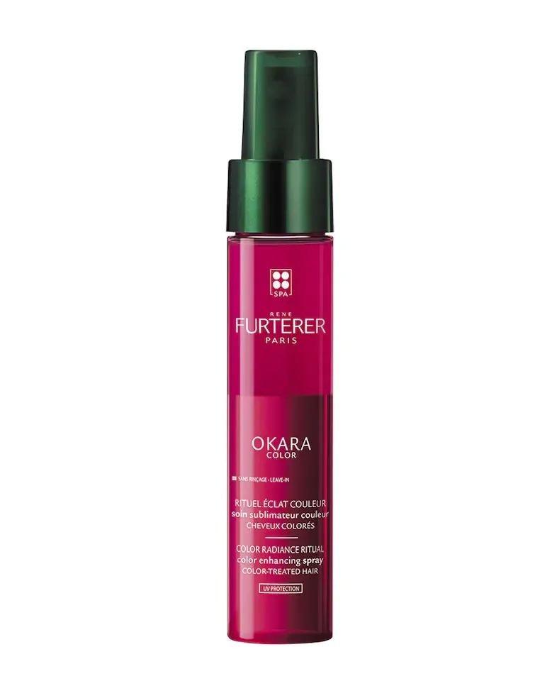 Спрей-усилитель цвета Okara от René Furterer - это средство для волос, которое наносится без смывания. Этот продукт мгновенно распутывает волосы и надолго защищает блеск окрашенных волос, продлевая стойкость окрашивания до шести недель. Его двухфазная формула включает UV-защиту и не содержит силикона, что способствует поддержанию здоровья волос. Эффективность спрея была проверена, показав 86% эффективность в распутывании, 90% в защите блеска и 89% в продлении цвета. Рекомендуется хорошо встряхнуть флакон, чтобы смешать обе фазы перед применением.