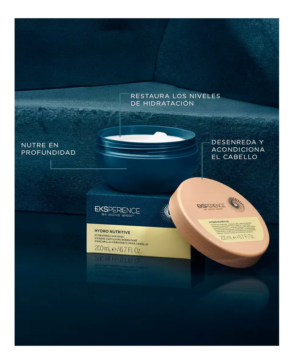 Маска для волос Hydro Nutritive Mask от Eksperience - это профессиональное интенсивное средство, которое восстанавливает уровень увлажнения волос и обеспечивает глубокое питание. Содержит ингредиенты морского происхождения, такие как комплекс Aquamaris, и растительного происхождения, включая масло макадамии и масло мурумуру. Эти ингредиенты обеспечивают внешнее и внутреннее питание волос. Кроме того, включает высокопитательные смягчающие вещества, способствующие здоровью волос. Среди компонентов находятся пантенол, который помогает поддерживать увлажнение, и ацетат токоферола, который действует как антиоксидант. Рекомендуется наносить на волосы, подсушенные полотенцем, после использования шампуня Eksperience, оставить на пять минут, затем смыть.