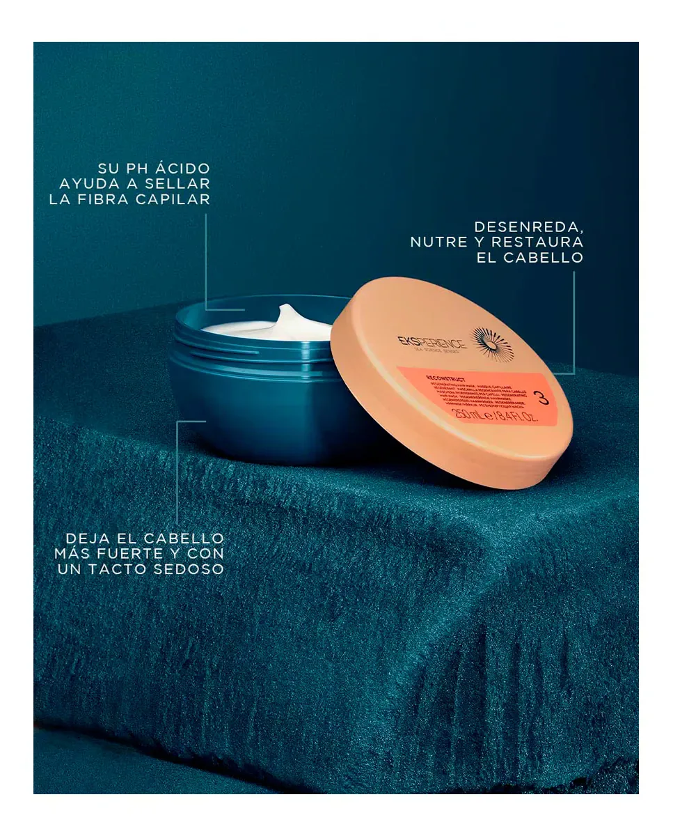Маска для волос Reconstruct Phase 3 от Eksperience - это профессиональный кондиционер. Она предназначена для укрепления волос, улучшения их блеска и эластичности. Содержит ингредиенты морского происхождения, такие как комплекс Aquamaris и экстракт водоросли Ceramium Rubrum. Также включает компоненты растительного происхождения, такие как миметическая кератин и масло сладкого миндаля, которые обеспечивают питательные эмоленты. Кроме того, содержит молекулу-реконструктор низкой массы, пантенол и токоферола ацетат, которые способствуют здоровью волос. Это продукт для мужчин и женщин.