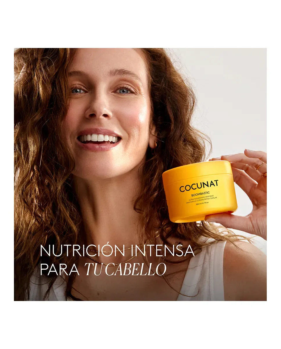 Маска для волос BOOMBASTIC от COCUNAT разработана для ухода за поврежденными и изнуренными волосами. Обеспечивает интенсивное питание, делая волосы мягкими, блестящими и шелковистыми. Ее формула восстанавливает волосы изнутри и особенно заботится о последних 5 см, чтобы предотвратить секущиеся кончики. Содержит масла абрикоса, камелии, макадамии и кокоса, которые богаты лауриновой кислотой, линолевой кислотой и каротиноидами. Эти ингредиенты проникают в волос, борются с потерей белка и укрепляют волосяное стержень. Включает гидрофобные ингредиенты, которые обеспечивают антифризовый эффект, блокируя влагу и предотвращая пушистость. Подходит для поврежденных, сухих, окрашенных и кудрявых волос, а также идеально для тех, кто придерживается метода Curly. Содержит 97,7% натуральных ингредиентов.