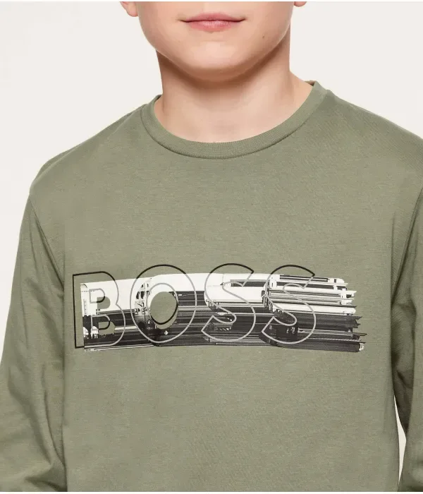 Лонгслив regular fit Boss Kidswear, зеленый
