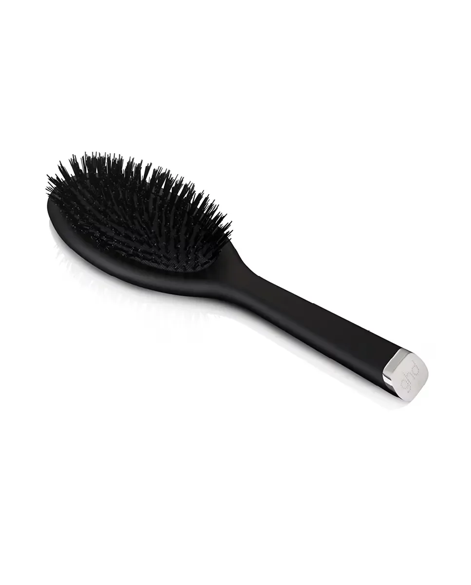 Ощутите совершенство с GHD The Dresser, нашей профессиональной элитной расческой. Антистатичная нейлоновая щетина не только способствует волосам без узлов от корней, но и работает в гармонии с натуральными маслами волос, придавая непревзойденный блеск. Поднимите уровень ваших причесок на новыйверхний уровень с GHD The Dresser и поражайте волосами, излучающими блеск и стиль.