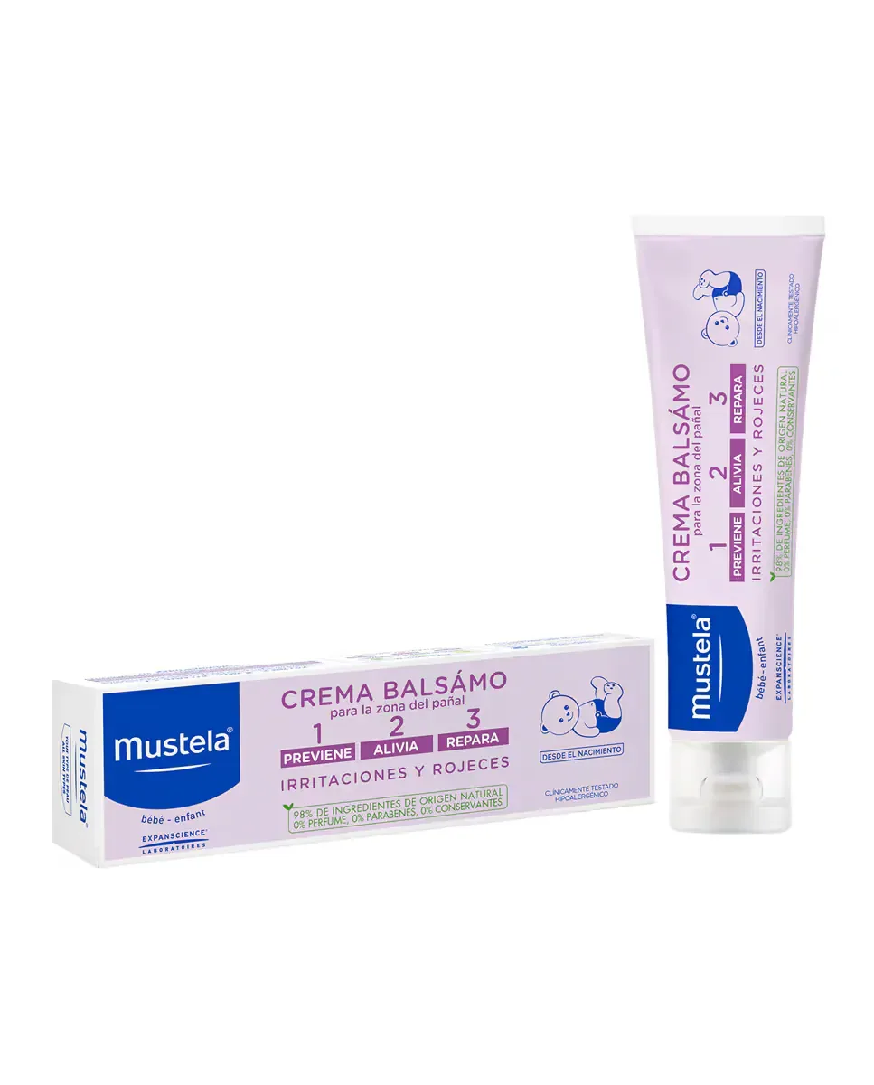 Бальзам-крем 1,2,3 bébé от Mustela - это средство для ежедневного ухода за раздражениями и покраснениями на области под подгузником, подходящее с рождения. Этот защитный бальзам действует, чтобы защищать и изолировать кожу от воздействия влажности и трения подгузников. Его формула включает персеоз авокадо, который помогает защищать кожный барьер и увлажнять кожу, оксеолин алтеи для обеспечения немедленного облегчения, и гелеодистилят подсолнечника, который обеспечивает липидами, необходимыми для восстановления кожного барьера. Гипоаллергенен, с высокой переносимостью с рождения, и состоит на 98% из ингредиентов природного происхождения, без парабенов, фталатов и феноксиэтанола. Рекомендуется наносить обильным слоем на чистую и сухую кожу ягодиц при каждой смене подгузника. В случае значительных или стойких повреждений рекомендуется проконсультироваться с врачом.
