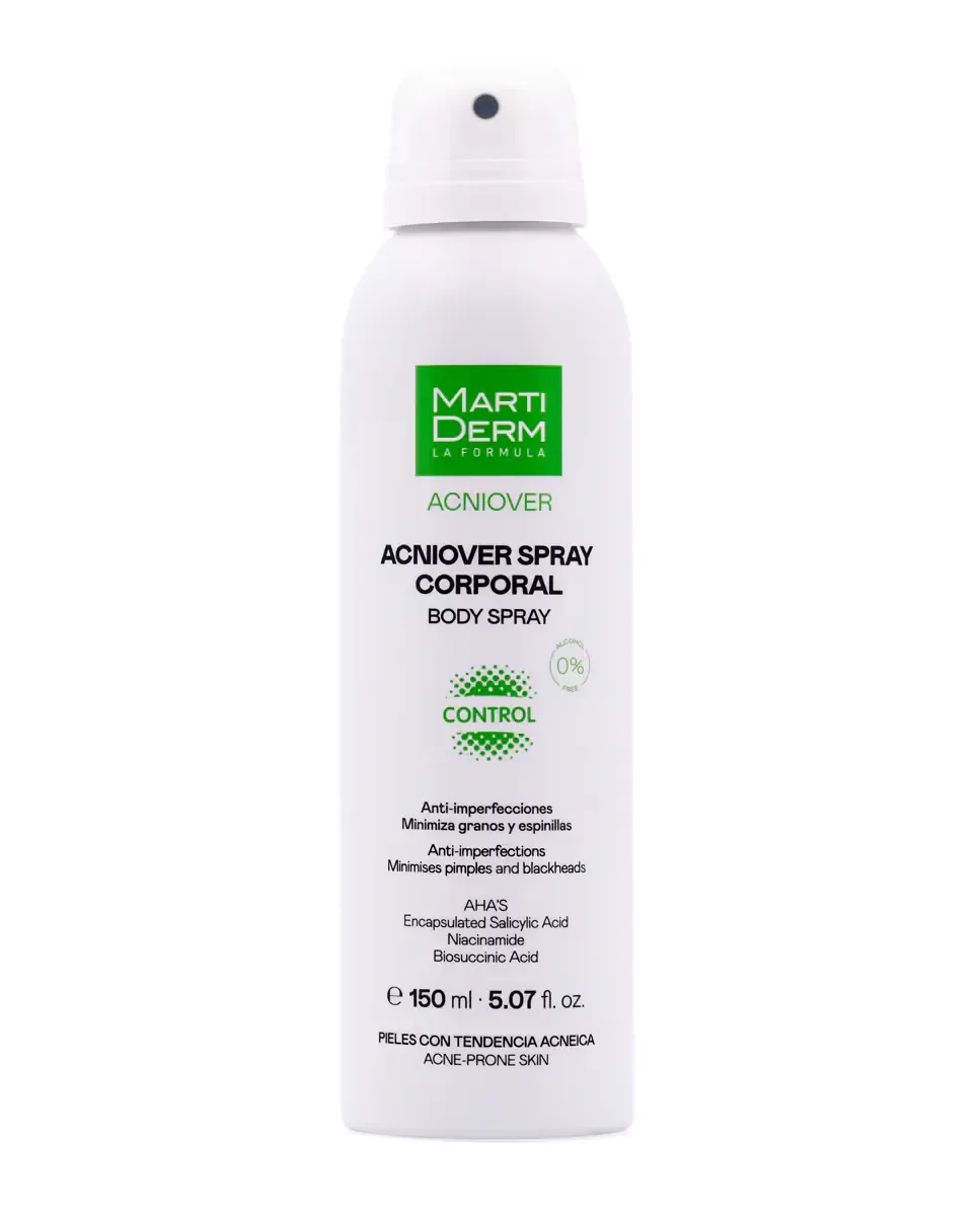 Спрей для тела Acniover от MartiDerm - это продукт, предназначенный для кожи с тенденцией к появлению прыщей и угрей. Этот быстросохнущий спрей легко наносится и разработан для минимизации появления несовершенств на обширных участках тела, таких как грудь и спина. Его высокая концентрация кислот способствует обновлению кожи, помогая уменьшить следы и улучшить текстуру кожи. Это некомедогенный продукт, что означает, что он не забивает поры. Рекомендуется взбалтывать перед применением на чистую кожу, удерживая на расстоянии 5-10 см, мягко массировать и дать высохнуть. Не следует наносить на лицо.