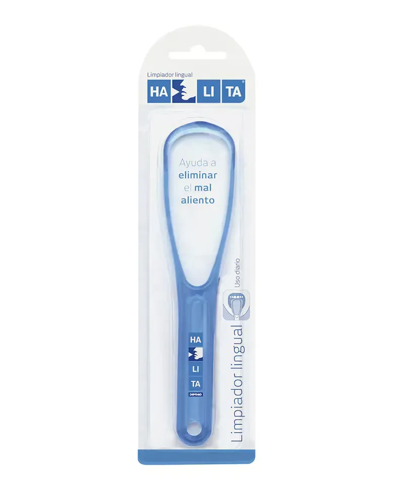 Скребок для языка Halita - это продукт для гигиены полости рта, ориентированный на уход за языком. Он удаляет бактериальную пленку, которая вызывает неприятный запах на поверхности языка. Его конструкция включает две стороны: одна с волнистым профилем, которая адаптируется к центральной борозде языка, и другая с гладким профилем, подходящая для очистки боковых частей. Это обеспечивает эффективную и полную чистку языка, улучшая здоровье полости рта. Продукт предназначен для обоих полов.