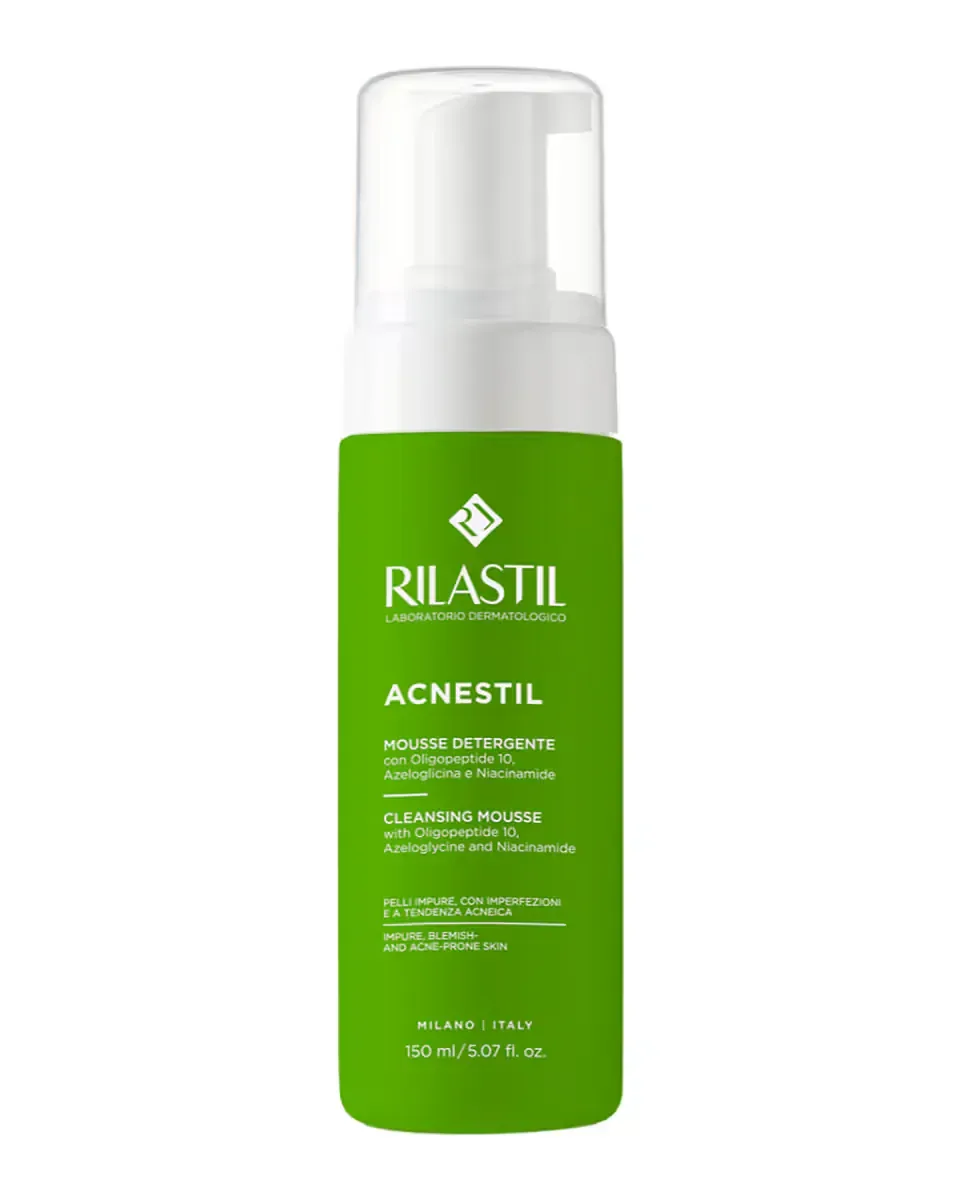 Очищающая пенка Acnestil Mousse от Rilastil - это средство гигиены для лица, предназначенное для кожи, склонной к акне или жирной. Его формула эффективно устраняет блеск и несовершенства, не используя агрессивные моющие вещества и раздражающие очищающие агенты. Этот уходовой продукт имеет текстуру мусса, обеспечивающую мягкое и здоровое очищение, способствуя поддержанию кожи в оптимальном состоянии. Это косметическое средство, классифицируемое как очищающее и ухаживающее, предназначенное для женщин.