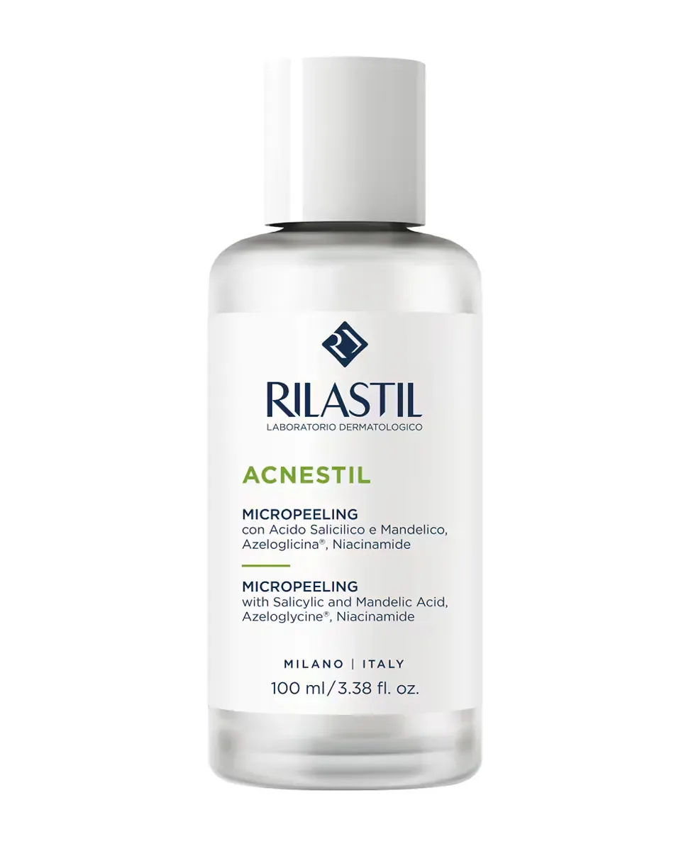 Limpieza Acnestil Plus от Rilastil - это эксфолиирующий микропилинг, разработанный для лечения акне и следов, которые оно может оставлять. Содержит салициловую кислоту, миндальную кислоту, азелоглицин и ниацинамид, которые предлагают многочисленные преимущества. Действует как эксфолиирующий лосьон, помогая уменьшать поражения, вызванные акне, и секрецию кожного жира. Подходит для использования на лице и на чувствительной коже, и может применяться в сочетании с ретиноидами или фармакологическими средствами. Отличается себорегулирующим и успокаивающим действием благодаря ниацинамиду, а также эксфолиирующим эффектом, который удаляет поверхностные слои кожи без раздражения благодаря 2% салициловой кислоты и 5% миндальной кислоты. Кроме того, содержит азелоглицин, который помогает регулировать секрецию кожного сала и увлажнять кожу. Клинические исследования показали его эффективность уже через три дня, демонстрируя значительное снижение как невоспалительных, так и воспалительных поражений, а также уровня продукции кожного сала, с 0% реакций.Сообщенных побочных эффектов нет. Не содержит ароматизаторов и спирта, протестирован на пять тяжелых металлов и не комедогенен. Рекомендуется наносить 1-2 раза в день на чистое лицо и локально на пораженные участки тела.