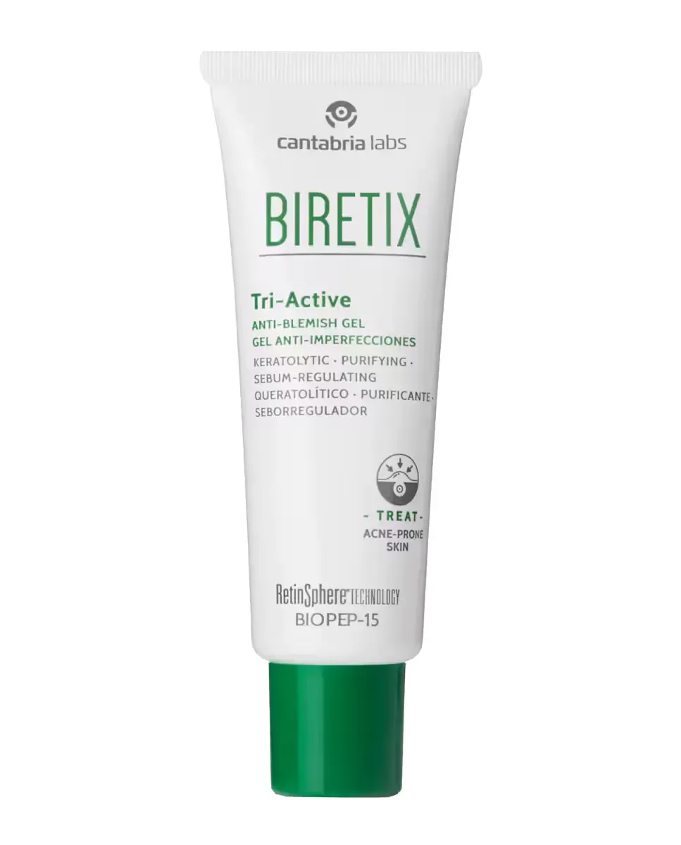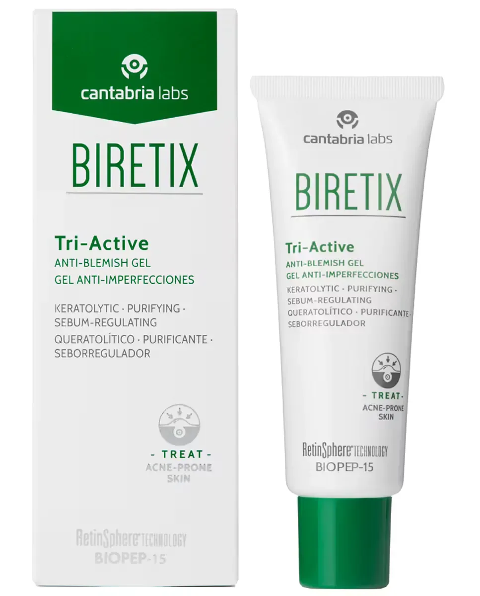 Гель Tri Active от Biretix - это продукт, разработанный для кожи, склонной к акне. Он содержит гликосферы с контролируемым высвобождением, известные как Retinsphere Technology, и активный компонент BIOPEP15, которые помогают уменьшить рост агентов, вызывающих акне, и предотвращают закупорку полисебационных фолликулов. В его составе есть 2% салициловой кислоты и 15% гликолевой кислоты, которые отшелушивают и выравнивают кожу. Ниацинамид (витамин B3) в составе контролирует выработку себума и оказывает осветляющий эффект, улучшая внешний вид несовершенств и следов на коже. Подходит для жирной и чувствительной кожи.