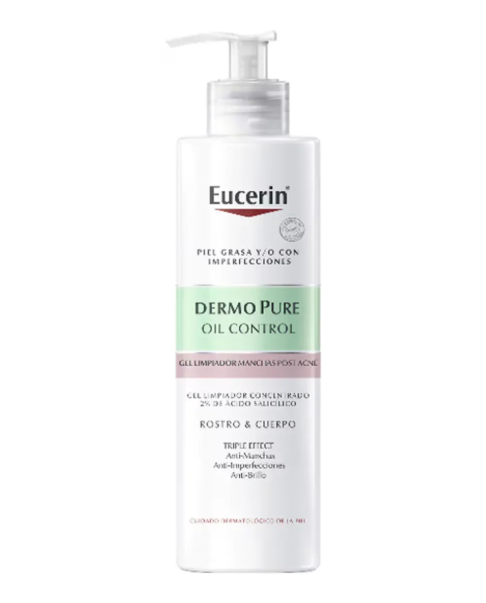 Гель для умывания DermoPure с тройным действием от Eucerin - это средство для умывания, разработанное для кожи с акне, и подходит для всех полов. Содержит 2% салициловой кислоты, которая действует как антибактериальное средство, помогая уменьшить загрязнения и очистить поры. Включает комплекс AHA-, BHA- и PHA-кислот для эксфолиации, который удаляет мертвые клетки кожи и уменьшает пятна от акне, известные как поствоспалительная гиперпигментация. Его формула глубоко очищает, удаляя излишки кожного сала, грязь и макияж, оставляя ощущение чистой и очищенной кожи. Рекомендуется использовать гель в качестве первого шага в уходе за кожей, нанося два раза в день.