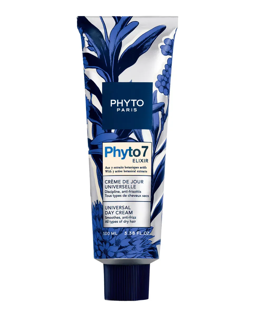 Универсальный дневной крем для волос Phyto 7 Elixir от Phyto Paris - это средство для сухих волос. Его легкая формула интенсивно питает волосы, не утяжеляя их. Преобразует текстуру волос, делая их мягкими и шелковистыми. Контролирует пушение в течение 48 часов. Содержит 7 активных растительных экстрактов: белую мальву, календулу, розмарин, шалфей, лопух, сою и иву. Идеален для нанесения на среднюю длину и кончики волос. Его консистенция плавкая и не жирная, позволяя глубоко питать волосы без утяжеления. Содержит 99% ингредиентов природного происхождения и не содержит силиконов. Можно использовать перед укладкой щеткой для защиты волос от пересушивания или как завершающее средство ухода, без необходимости смывания.