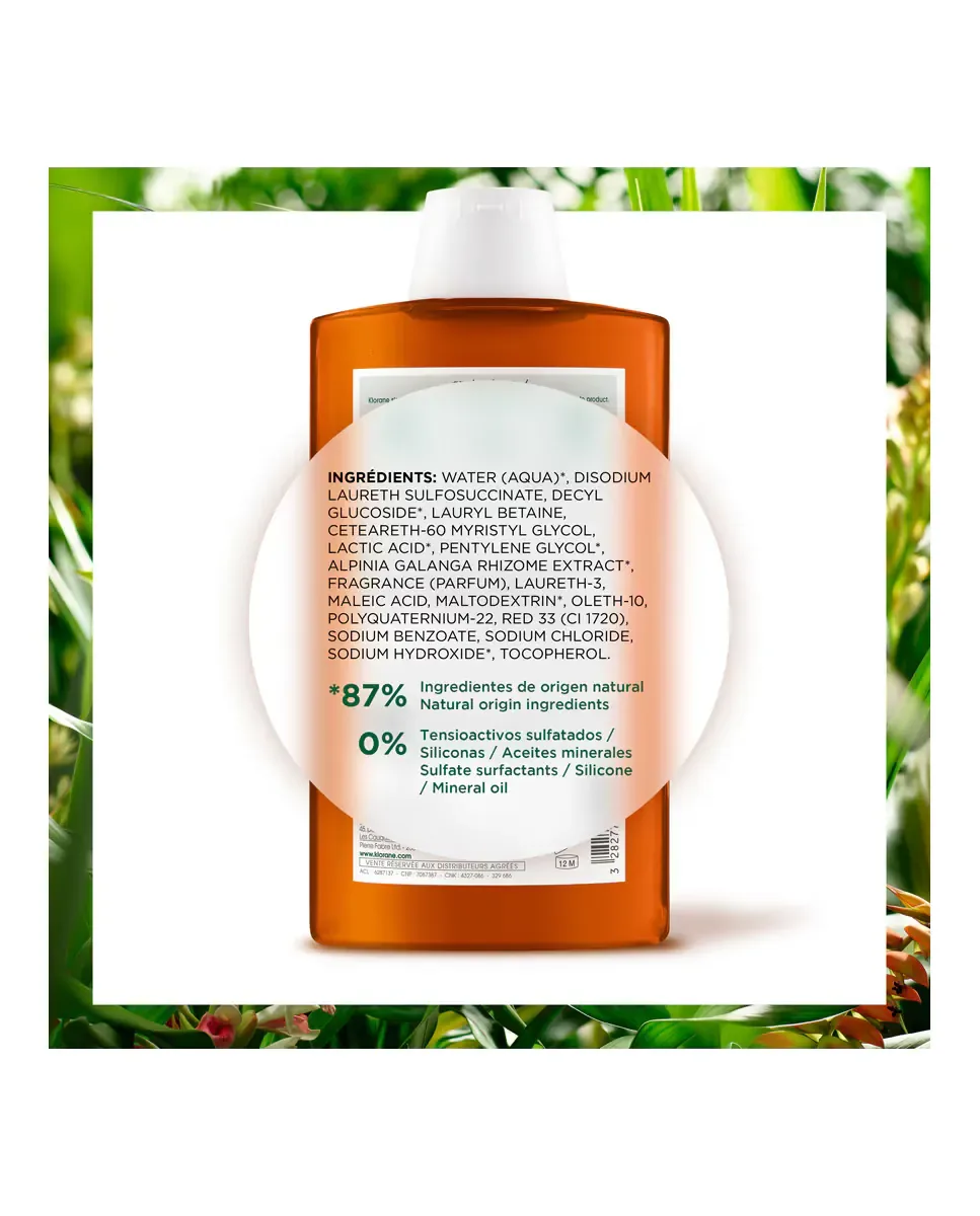 Реувлажняющий шампунь против перхоти с галангалом от Klorane. Разработан для борьбы с перхотью и успокоения кожи головы. Содержит целебные свойства корня галангала, который принадлежит к семейству куркумы. Обеспечивает эффективное и натуральное лечение. Регулярное использование помогает поддерживать волосы чистыми и свободными от загрязнений. Обеспечивает ощущение свежести и благополучия. Наносится на влажные волосы и кожу головы, вспенивается и мягко массируется перед смыванием.