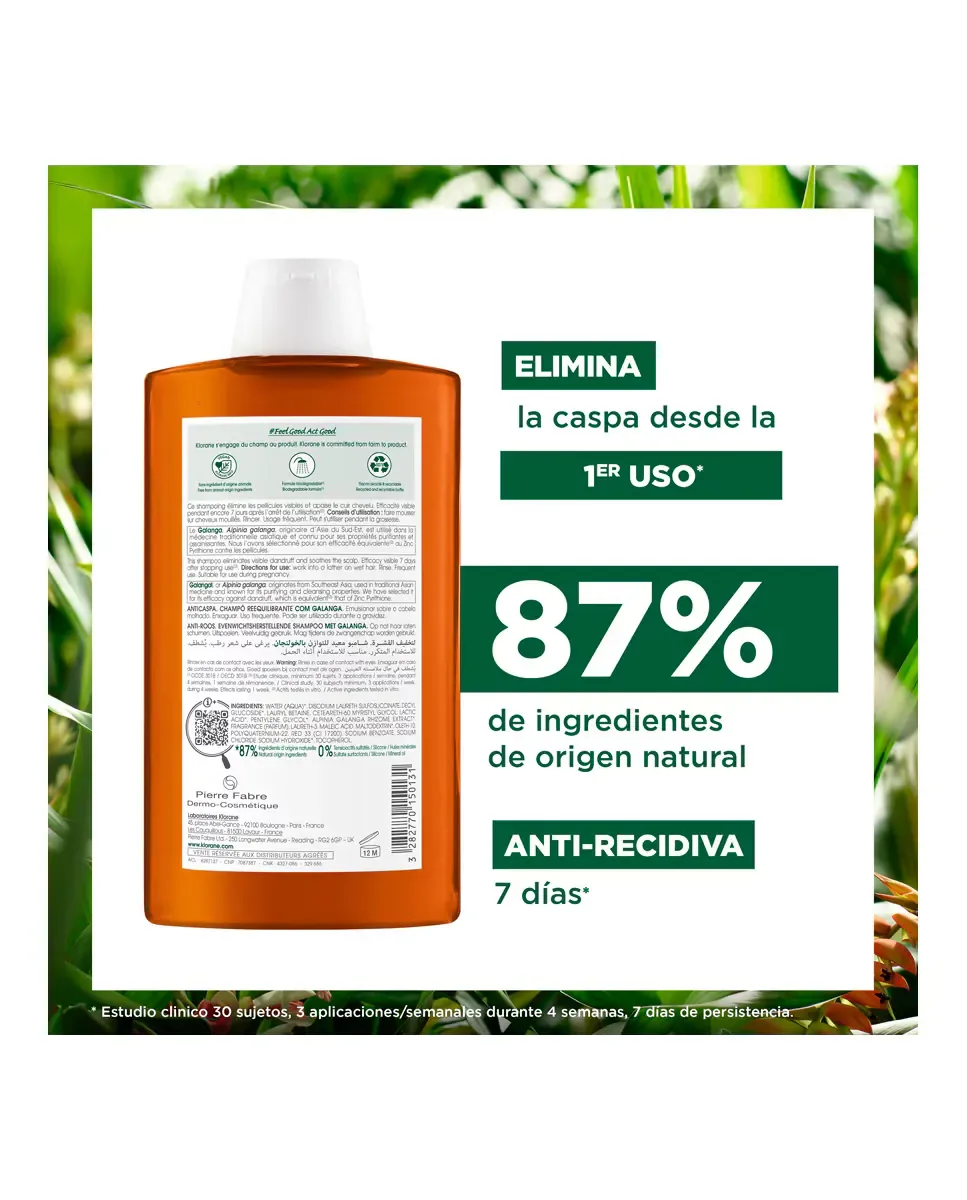Преимущества шампуня против перхоти с галангалом от Klorane. Составлен для борьбы с перхотью и успокоения кожи головы. Содержит лечебные свойства корня галангала, который принадлежит к семейству куркумы. Обеспечивает эффективное и натуральное лечение. Регулярное использование помогает поддерживать волосы чистыми и свободными от загрязнений. Придает ощущение свежести и комфорта. Наносится на влажные волосы и кожу головы, вспенивается и мягко массируется перед смыванием.