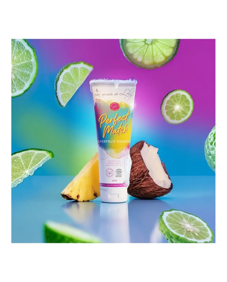 Шампунь Perfect Match от Les Secrets De Loly содержит 97,2% ингредиентов природного происхождения и имеет сертификат COSMOS NATURAL. Он предназначен для кудрявых и пушистых волос и подходит для использования как мужчинами, так и женщинами. Его формула включает экстракты ананаса, какао и банана, которые обеспечивают витамины, минералы и антиоксиданты, укрепляя волос и способствуя здоровой коже головы. Содержит эфирное масло бергамота и красные водоросли, придающие волосам блеск. Семена золотого льна, богатые полисахаридами, обеспечивают глубокое увлажнение волос. Рекомендуется массажировать массажными движениями на мокрых волосах в течение 30 секунд до появления пены, затем тщательно смыть. Для лучших результатов рекомендуется использовать кондиционер Cream Conditioner из программы Weightless Program после шампуня.