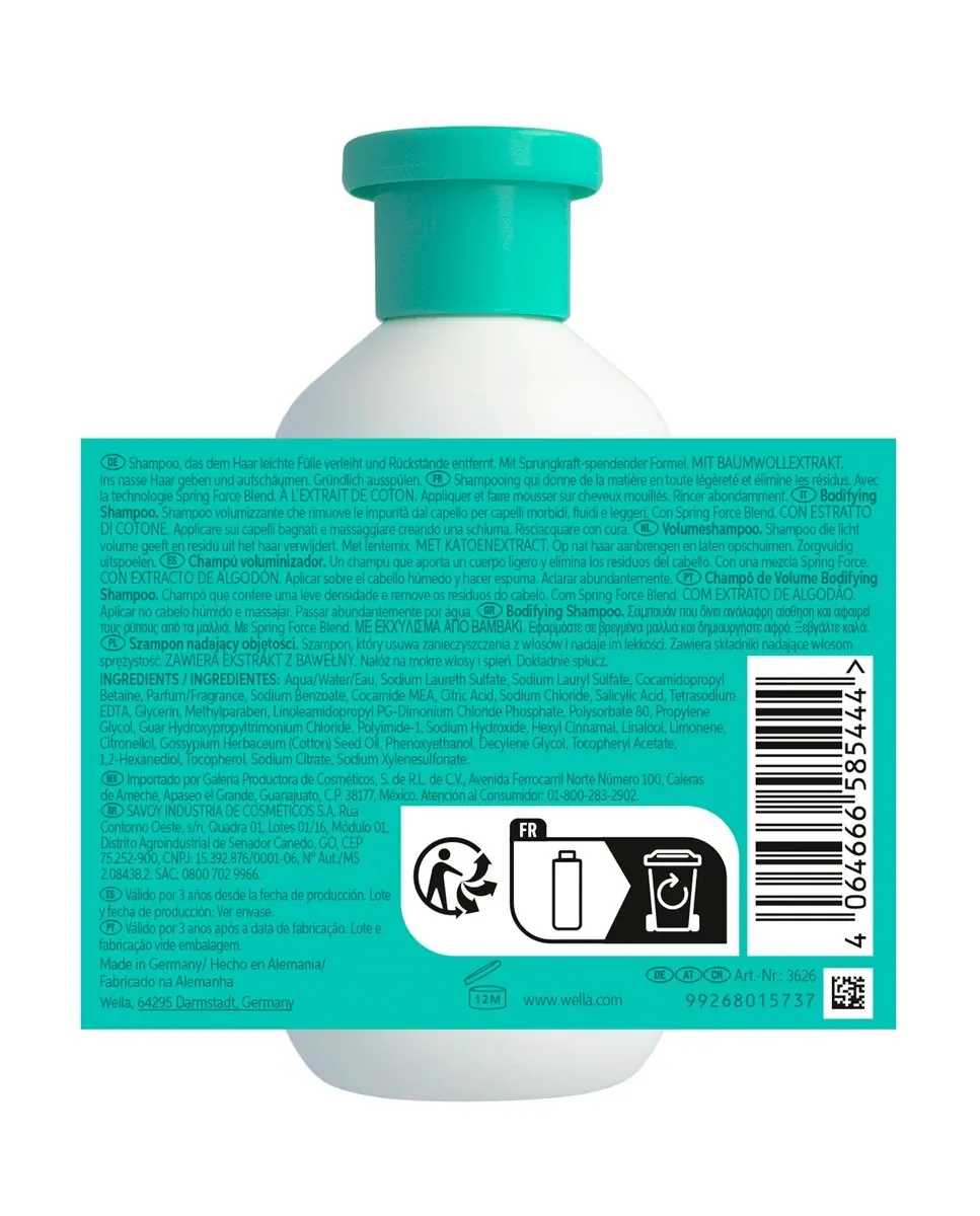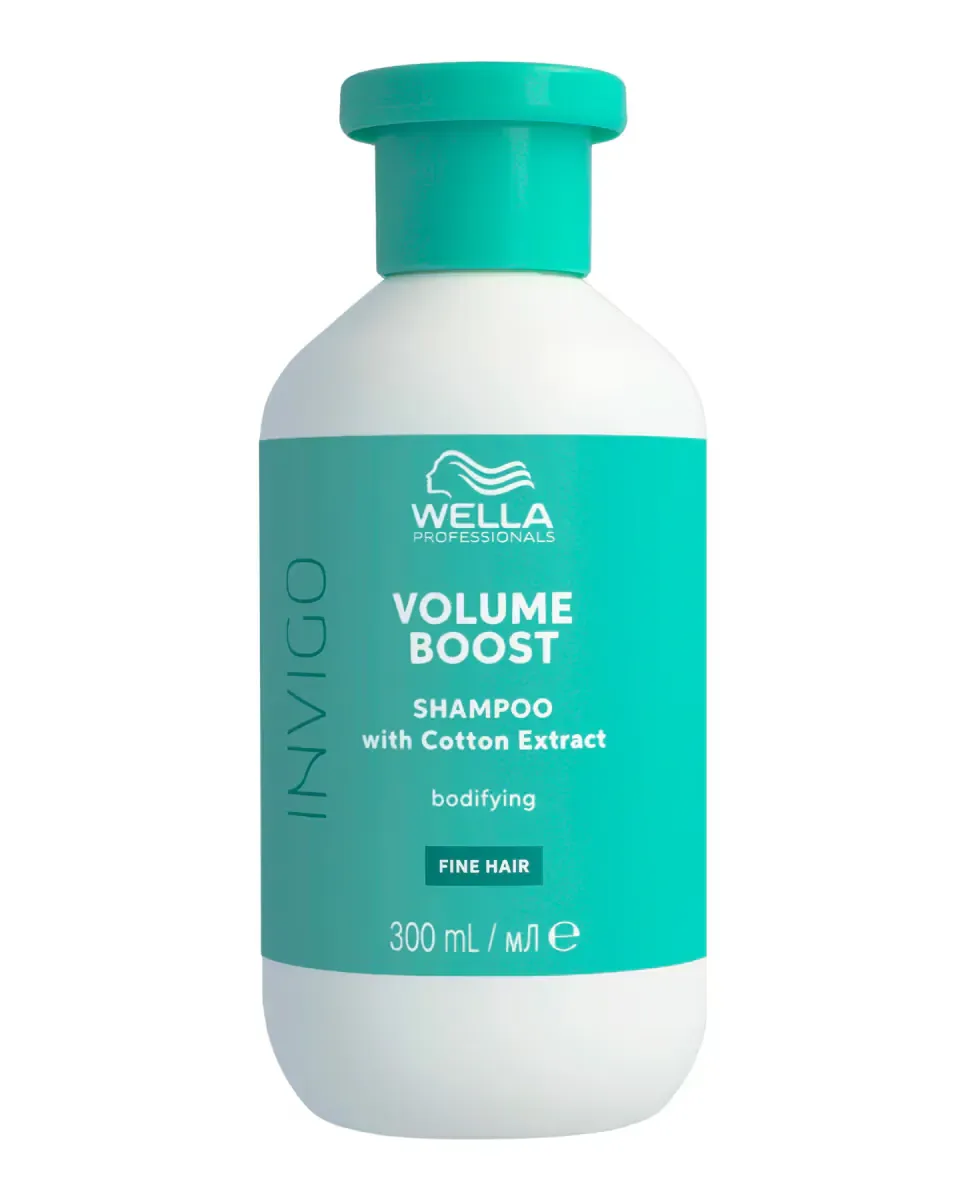Шампунь Invigo Volume Boost от Wella Professionals - это шампунь, предназначенный для очищения волос и придания им объема и блеска. Содержит экстракт хлопка, что делает его идеальным для тонких волос, так как он обеспечивает объем без утяжеления. Его формула включает полимеры с пружинящей силой, которые улучшают текстуру волос. Подходит для всех типов волос, особенно для нормальных и тонких волос. Наносится на мокрые волосы, хорошо вспенивается и полностью смывается.