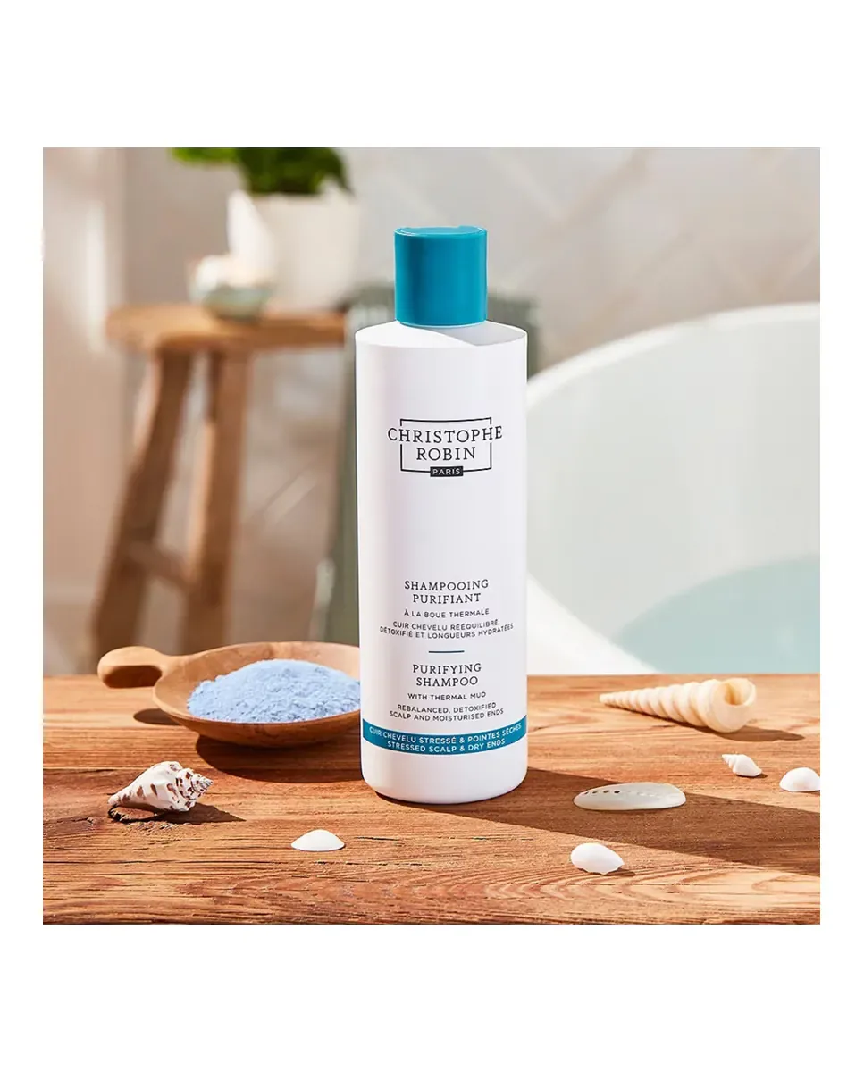 Очищающий шампунь Christophe Robin - это детокс-продукт для ежедневного использования, предназначенный для удаления загрязнений и воздействия окружающей среды на волосы. Содержит экстракты термальной грязи, которые помогают удалять накопившиеся остатки и избыточный жир. Обогащенный экстрактами красных водорослей, он смягчает и защищает кутикулу волос от повреждений, вызываемых загрязнением и экологическими факторами. Этот шампунь балансирует состояние кожи головы и дольше сохраняет волосы чистыми. Не содержит парабенов, силиконов и SLS, обеспечивая глубокое очищение, удаляя остатки, перхоть и жир с кожи головы. Это универсальный продукт, подходящий для жирных волос и для ухода против перхоти.