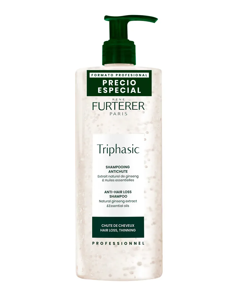Антивыпадательный шампунь Triphasic от René Furterer - это продукт, который уменьшает выпадение волос и заботится о здоровье кожи головы. Его формула не содержит сульфатов и силиконов. Включает витамин B5, экстракты пфаффии и органического женьшеня, которые тонизируют кожу головы. Содержит микро-шарики с эфирными маслами, которые стимулируют рост более густых и толстых волос. Текстура шампуня прозрачная, что позволяет видеть микро-шарики перламутрово-белого цвета, которые разрушаются при нанесении. Аккуратно очищает волосы, оставляя их мягкими, блестящими и легко расчесываемыми. Состоит на 96% из ингредиентов природного происхождения, а его формула биоразлагаемая, в соответствии с нормами OCDE301B.