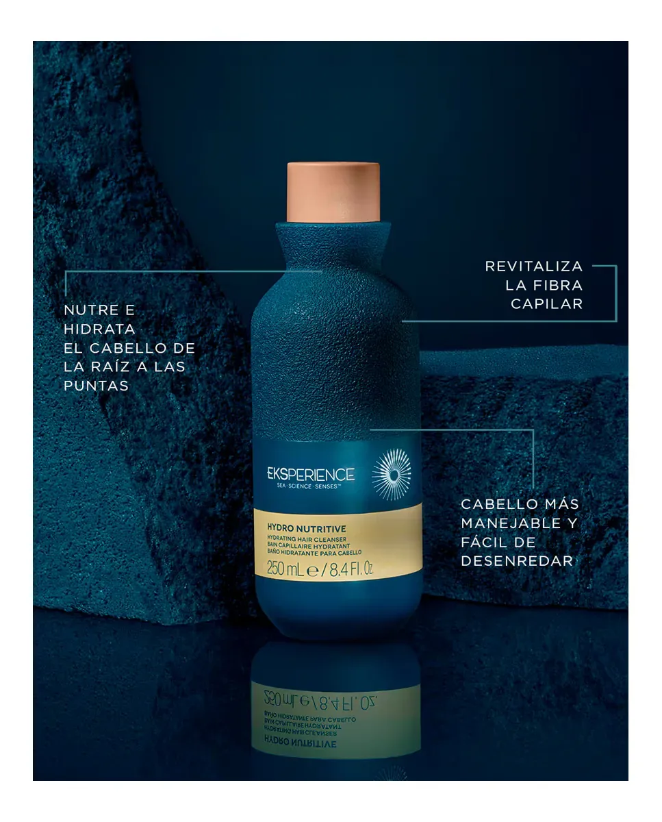 Шампунь Hydro Nutritive Cleanser от Eksperience - это унисекс-шампунь, который обеспечивает профессиональное очищение волос. Удаляет загрязнения и оставляет волосы увлажненными и питательными. Содержит ингредиенты морского происхождения, такие как комплекс Aquamaris, а также масла авокадо и макадамии, обеспечивающие внешнее питание. Включает высокопитательные эмоленты для эффективного внутреннего питания. Также содержит пантенол, который увлажняет, и ацетат токоферола, который действует как антиоксидант. Наносится на влажные волосы, мягко массируется и тщательно смывается.