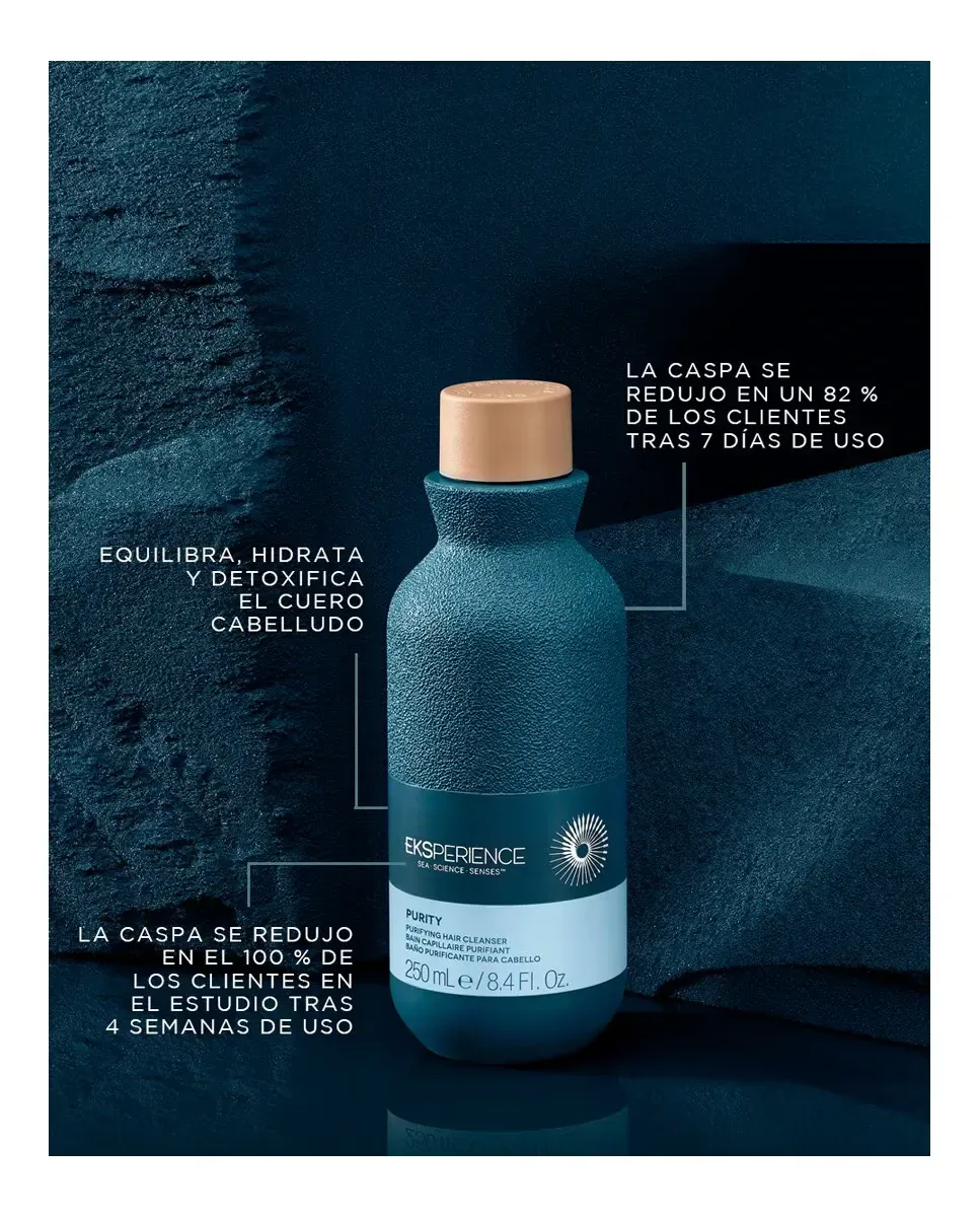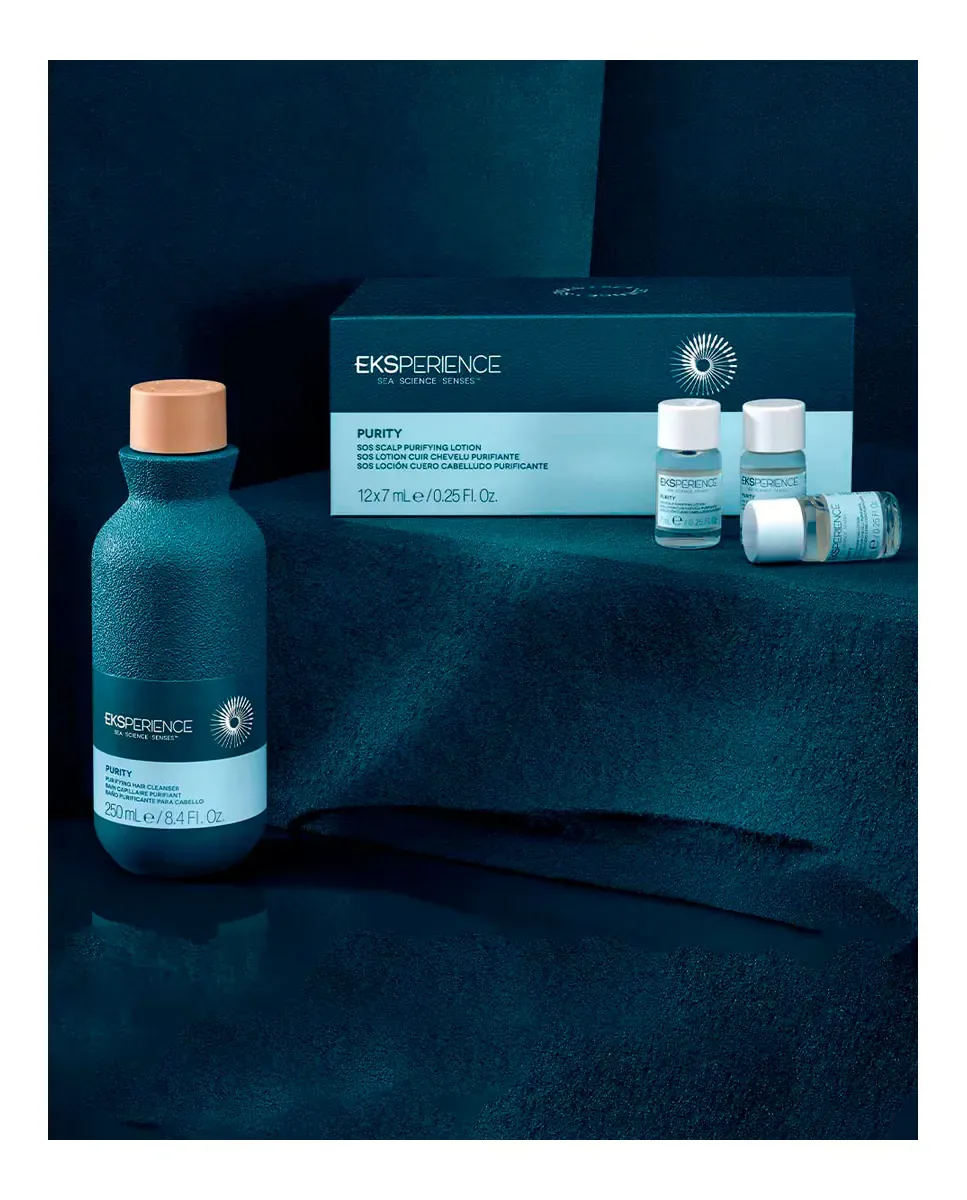 Шампунь Purifying Cleanser от Eksperience - это продукт, который обеспечивает очищающую ванну для кожи головы. Он разработан для балансировки и детоксикации, помогая предотвратить повторное появление перхоти. Этот шампунь универсален и содержит такие ингредиенты, как Aquamaris Complex, который происходит из морских источников, и пироктон оламин, обладающий противогрибковыми свойствами. Также он включает пантенол, который увлажняет волосы. Наносится на влажные волосы, мягко массируется и тщательно смывается, используется при каждом мытье кожи головы и волос.