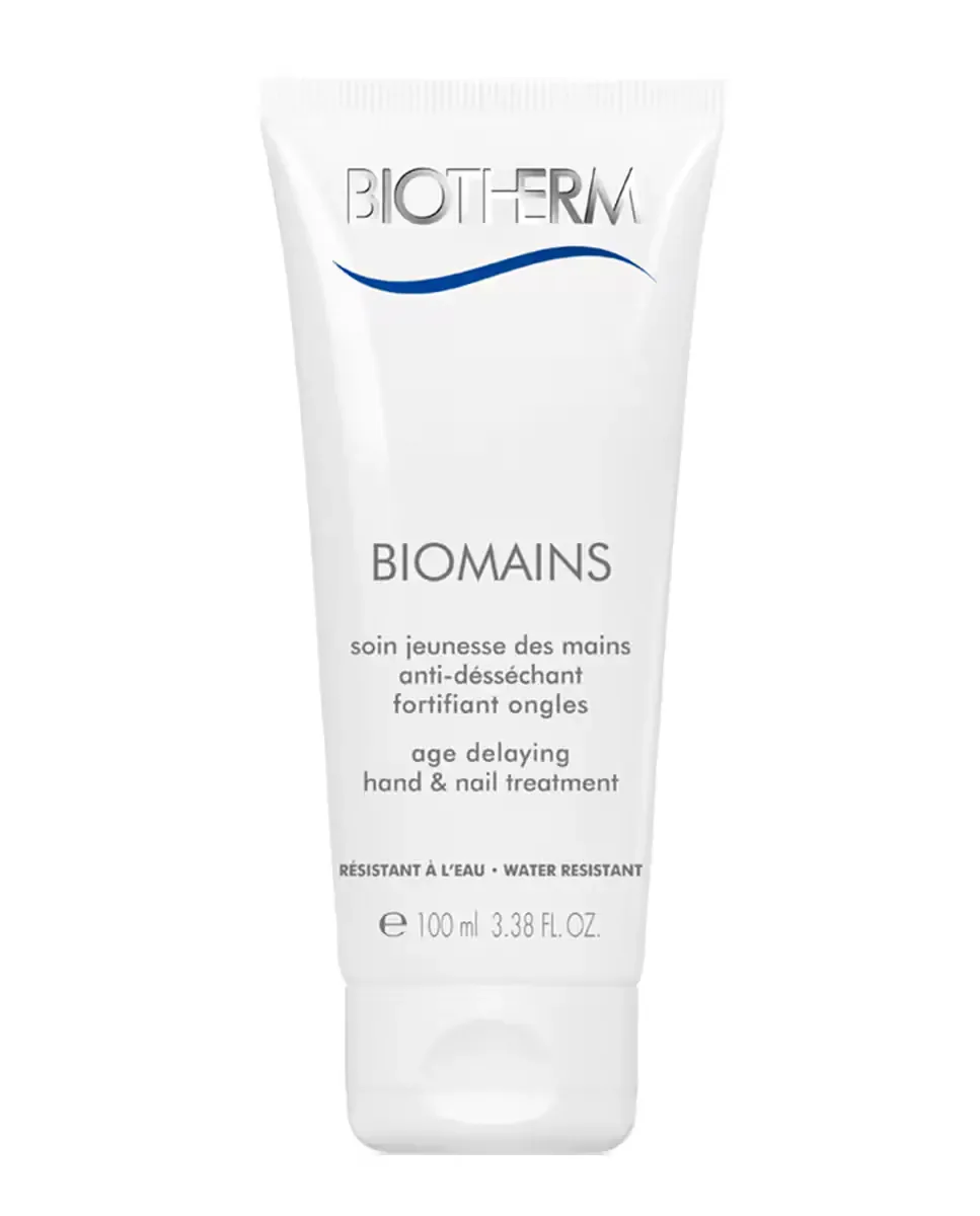 Крем для рук Biomains от Biotherm является увлажняющим и омолаживающим средством по уходу за руками. Он действует как защитный вуаль, предотвращающий признаки старения и темные пятна. В его формулу входят УФ-фильтры для солнечной защиты и витамин C для осветления существующих пятен. Содержит увлажняющие агенты и незаменимые жирные кислоты, которые питают кожу. Чистый термальный планктон стимулирует клеточную регенерацию, улучшая внешний вид рук. Также укрепляет ногти, повышая их прочность. Для применения необходимо массировать от запястья к кончикам пальцев, уделяя внимание основанию ногтей.