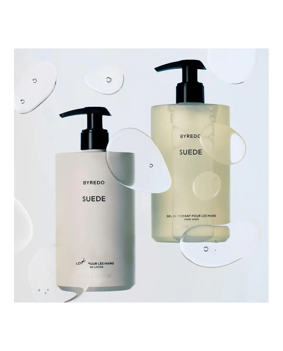Лосьон для рук Suede от Byredo - это средство по уходу за руками. Он представлен в формате заправки объемом 450 миллилитров. Этот лосьон ультралегкий и питательный, с тонким ароматом, включающим ноты бергамота, альдегида и фиалки, на базе теплого янтаря и мягких мускусов. Он предназначен для использования в классических флаконах Byredo. Рекомендуется дополнять его использование мылом и кремом для рук из той же линейки для полного опыта. Это унисекс продукт.