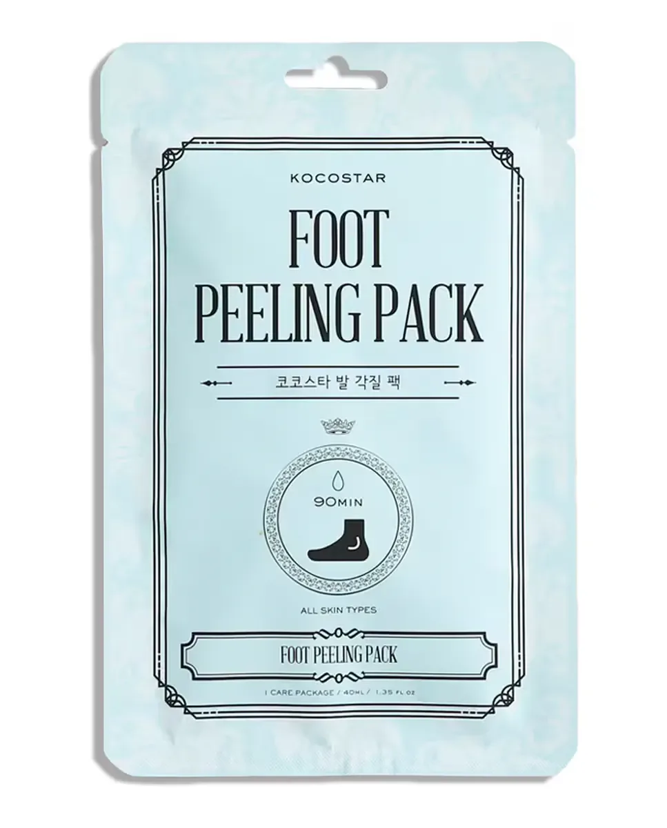 Пилинг-носочки Foot Peeling Pack от Kocostar являются средством ухода за ногами, подходящим для всех типов кожи и унисекс. Этот продукт отшелушивает, обновляет и увлажняет кожу благодаря формуле, включающей альфа-гидроксикислоты (AHA), гиалуроновую кислоту и успокаивающие и освежающие активные компоненты. Его преимущества включают обновление поверхностного слоя кожи и удаление омертвевших клеток, что способствует увлажнению и пилингу ног. Для использования необходимо разрезать маску по пунктирной линии, вымыть ноги горячей водой, надеть носочки, закрепив их липкой лентой, и оставить на 90 минут. Затем носочки снимаются, и ноги снова моются горячей водой. Этот продукт не подходит для беременных женщин и людей с диабетической стопой.