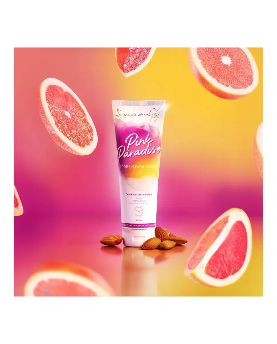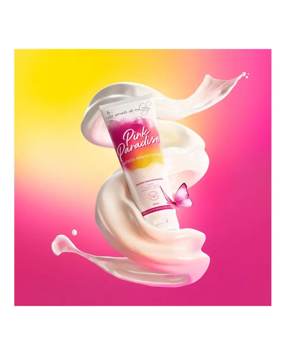 Кондиционер Pink Paradise от Les Secrets De Loly - это продукт по уходу за вьющимися и пушистыми волосами, созданный из 99,2% ингредиентов натурального происхождения. Он интенсивно питает и увлажняет волосы, облегчая распутывание пальцами или расческой. Содержит растительное масло жожоба, которое оживляет и придает блеск; растительное масло сладкого миндаля, которое смягчает и облегчает расчесывание; алоэ вера, которое обеспечивает увлажнение; и провитамин B5, который действует как укрепляющий и восстанавливающий ингредиент. Глицерин помогает удерживать влагу в волосах, делая их блестящими, эластичными и легкими для укладки. Этот кондиционер универсален и может использоваться в полной программе ухода за волосами, включая метод no poo или co-wash для редкого мытья шампунем.