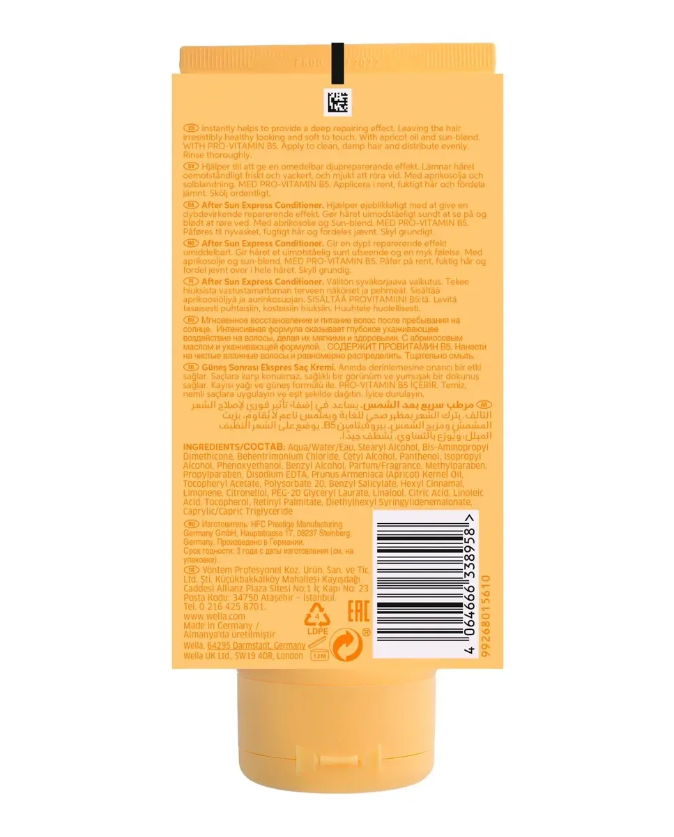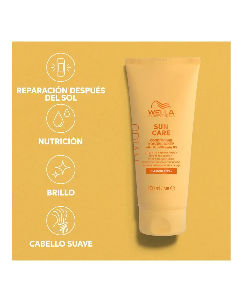Кондиционер Invigo Sun от Wella Professionals - это кондиционер, предназначенный для восстановления и распутывания волос после пребывания на солнце. Он содержит провитамин B5, который помогает восстановить увлажнение волос. Формула включает витамин E, который обеспечивает защиту от солнечных повреждений. Оставляет волосы мягкими и имеет фруктово-цветочный аромат. Этот продукт предназначен для всех и относится к серии Invigo Sun, ориентированной на уход за волосами, подвергшимися воздействию солнца.