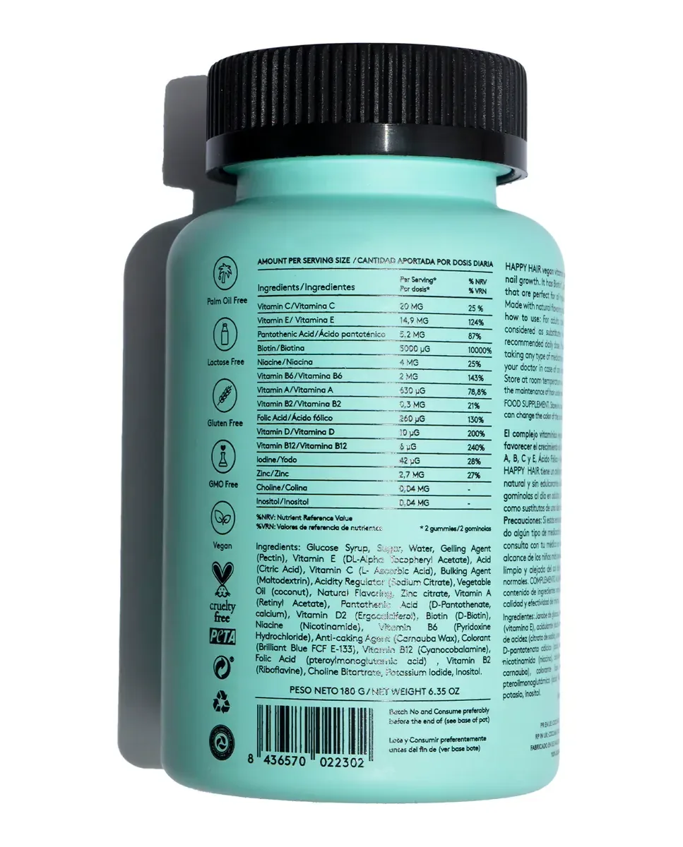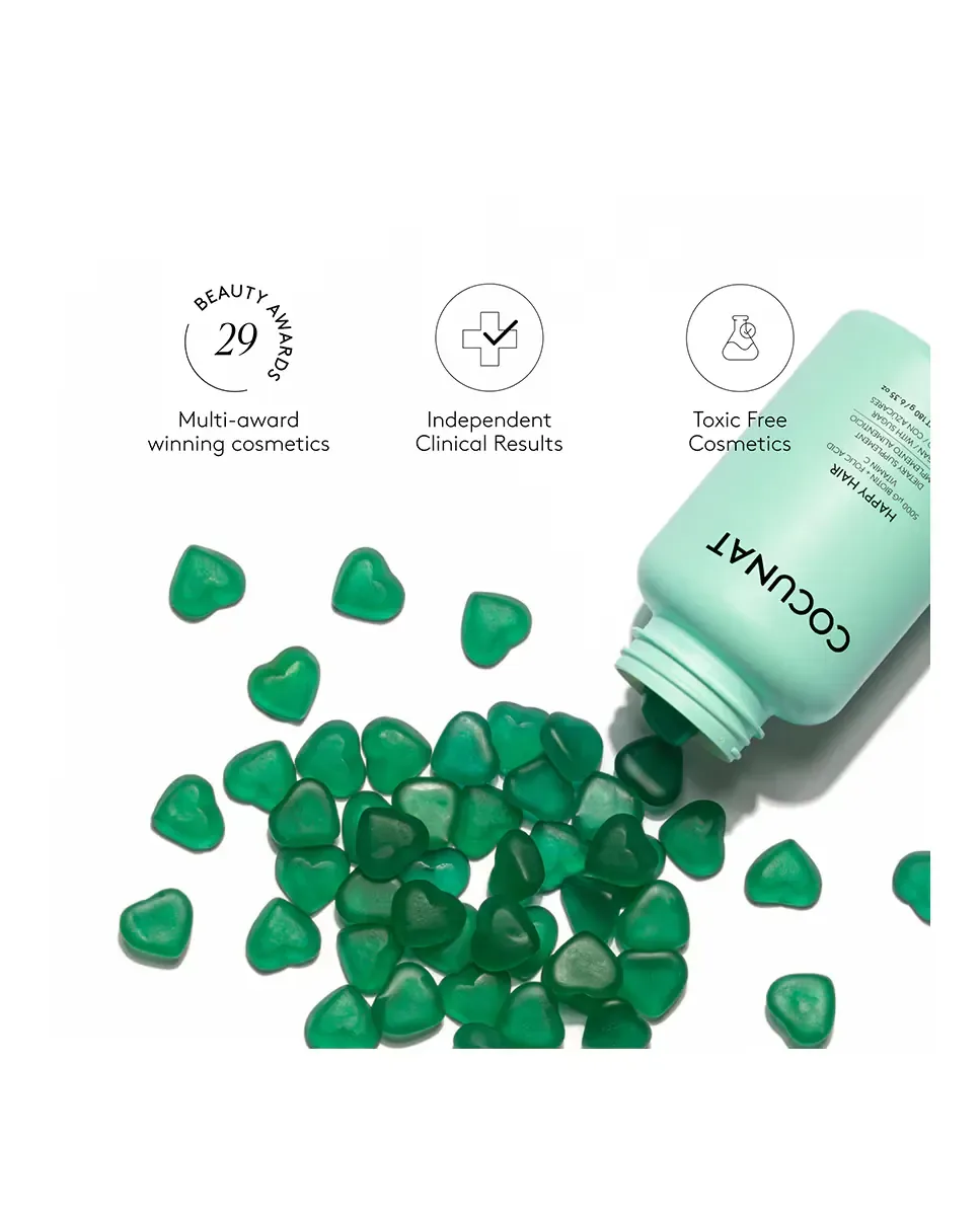 Нутрикосметик от Cocunat, разработанный для укрепления и восстановления волос. Формула направлена на борьбу с потерей густоты, отсутствием блеска и выпадением. Содержит 15 клинически проверенных 100% натуральных и веганских активных ингредиентов. Включает 5 000 микрограммов биотина, 2 700 микрограммов цинка, а также витамины A, B, C и E, фолиевую кислоту, йод, ниацинамид, инозитол и холин. Каждая упаковка содержит 60 веганских жевательных таблеток, что обеспечивает 30-дневный курс. Рекомендуется использовать в течение 3 месяцев для достижения оптимальных результатов. Cocunat - испанский бренд с более чем 15 международными наградами, ориентированный на устойчивое развитие и инновации в косметике. Предлагает продукты без токсинов и cruelty-free. Этот продукт не содержит гормонов.