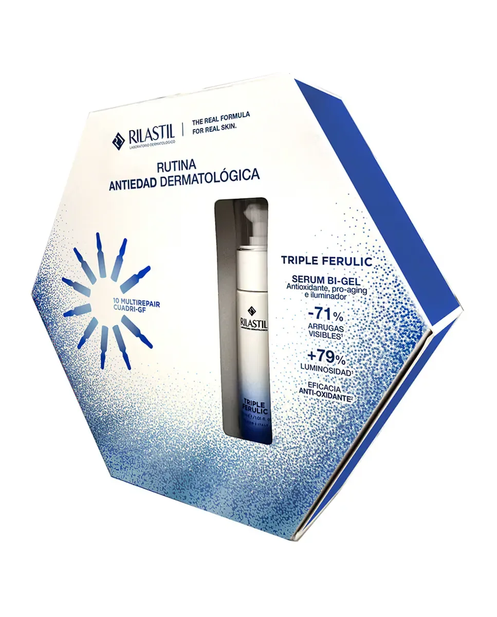 Пакет Radiance от Rilastil - это унисекс подарочный набор, включающий продукты для ухода за кожей. В него входит антиоксидантная сыворотка bi-gel, которая сочетает пептиды, феруловую кислоту и супероксиддисмутазу, обеспечивая антиэйдж и осветляющие свойства. Ее текстура позволяет быстро впитываться, а ингредиенты помогают предотвращать фотостарение, поддерживая кожу увлажненной и с ровным тоном. В набор также включены ампулы с факторами роста клеток биотехнологического происхождения, обеспечивая реструктурирующее и восстанавливающее действие. Эти ампулы помогают уменьшать морщины, повышать эластичность и активировать клеточный метаболизм благодаря своей формуле, включающей SOD, гиалуроновую кислоту и гликаны, все с доказанной in vitro эффективностью. Этот набор сочетает увлажнение, сияние и антивозрастное действие.