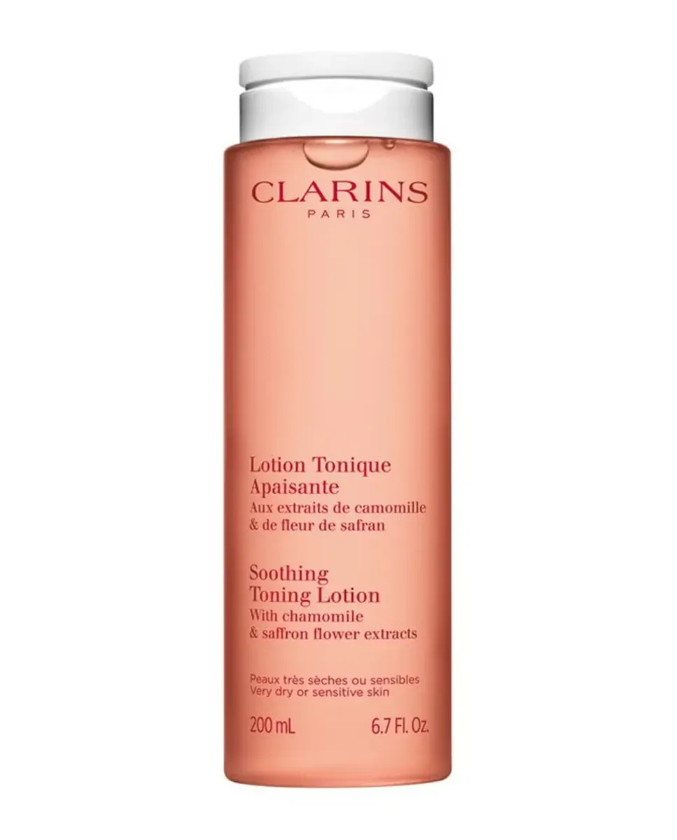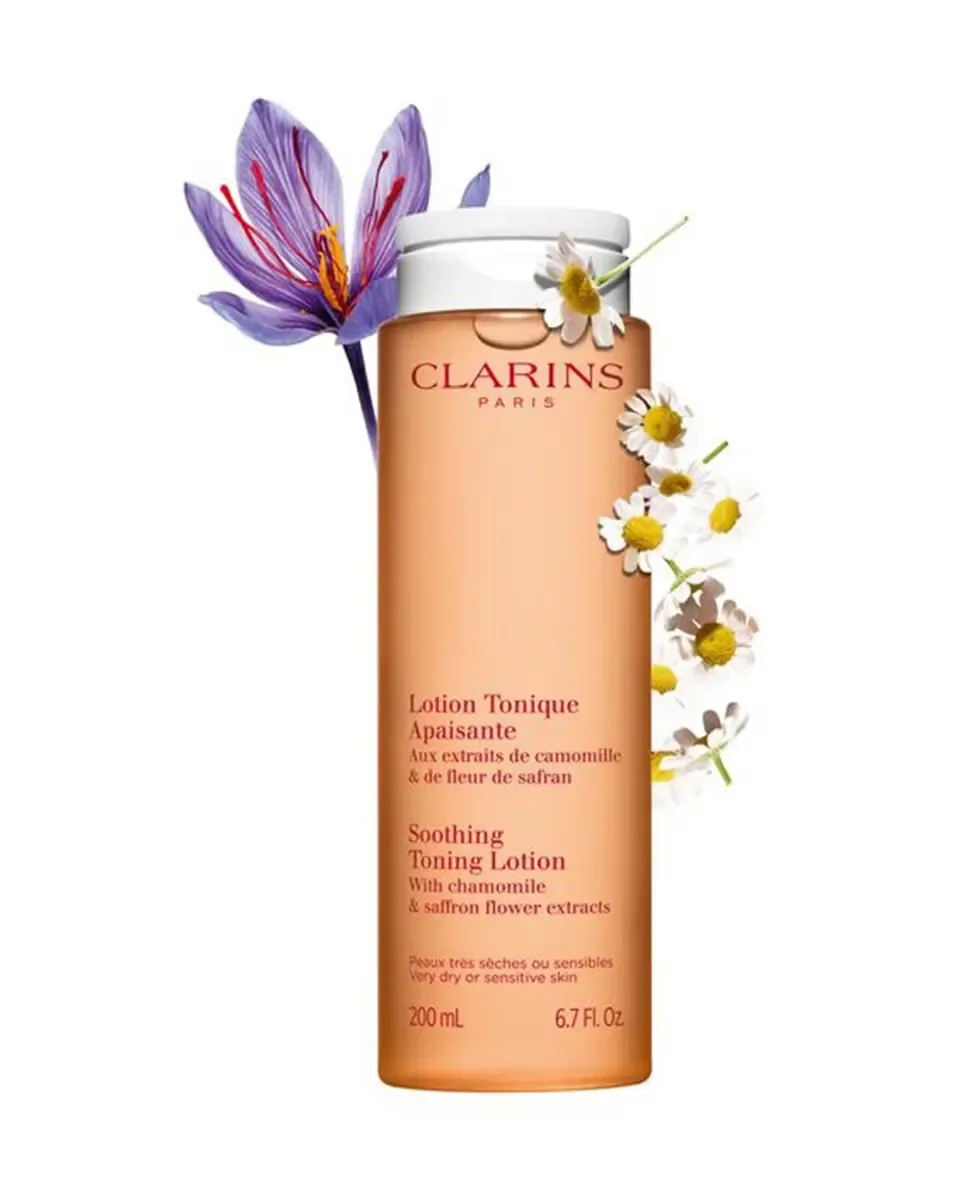 Успокаивающий тоник-лосьон Clarins - это тоник, предназначенный для завершения процесса снятия макияжа с очень сухой или чувствительной кожи. Он содержит экстракт органической ромашки, который успокаивает и смягчает кожу, а также Microbiote Complex от Clarins, включающий полифенолы цветков шафрана и морской пребиом, способствующие сохранению баланса микробиоты кожи. Лосьон представлен в эко-дизайн упаковке и многоразовом флаконе, что снижает экологический след. Тонизирующая лосьон успокаивает сухую кожу и наносится на чистую кожу с помощью ватных дисков, выполняя мягкие разглаживающие движения по лицу и шее. Он полезен после эксфолиации или маски для удаления излишков продукта и подготовки кожи к последующему уходу.