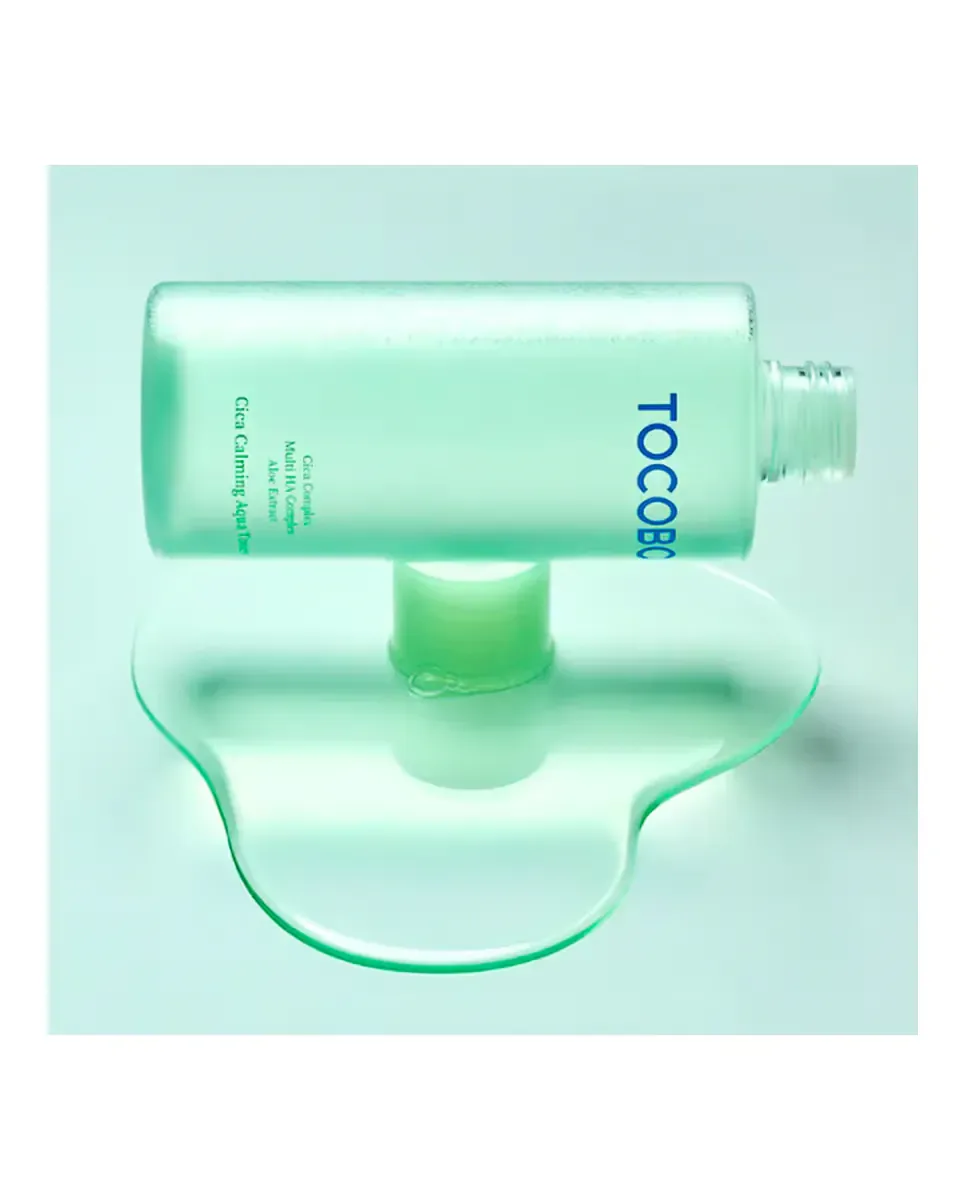 Тоник Cica Calming Aqua от Tocobo - это веганский тоник, разработанный для успокоения и увлажнения кожи. Он специально создан для чувствительной кожи. Содержит воду из листьев Camellia Sinensis и гиалуронат натрия, которые помогают удерживать влагу и снижать воспаление. В состав входит экстракт листьев Mentha Aquatica, который укрепляет и тонизирует кожу, обеспечивая ощущение свежести. Также содержит экстракт листьев Aloe Ferox и ниацинамид, которые успокаивают раздражение и покраснение, улучшая текстуру и тон кожи. Его увлажняющая текстура оставляет кожу гладкой и освеженной без ощущения тяжести. Этот продукт прошел тесты на раздражение кожи, что делает его подходящим для чувствительной кожи. Среди его преимуществ - способность успокаивать раздраженную кожу, интенсивно увлажнять, смягчать и улучшать текстуру, а также балансировать pH. Формула веганская и не содержит спирта.