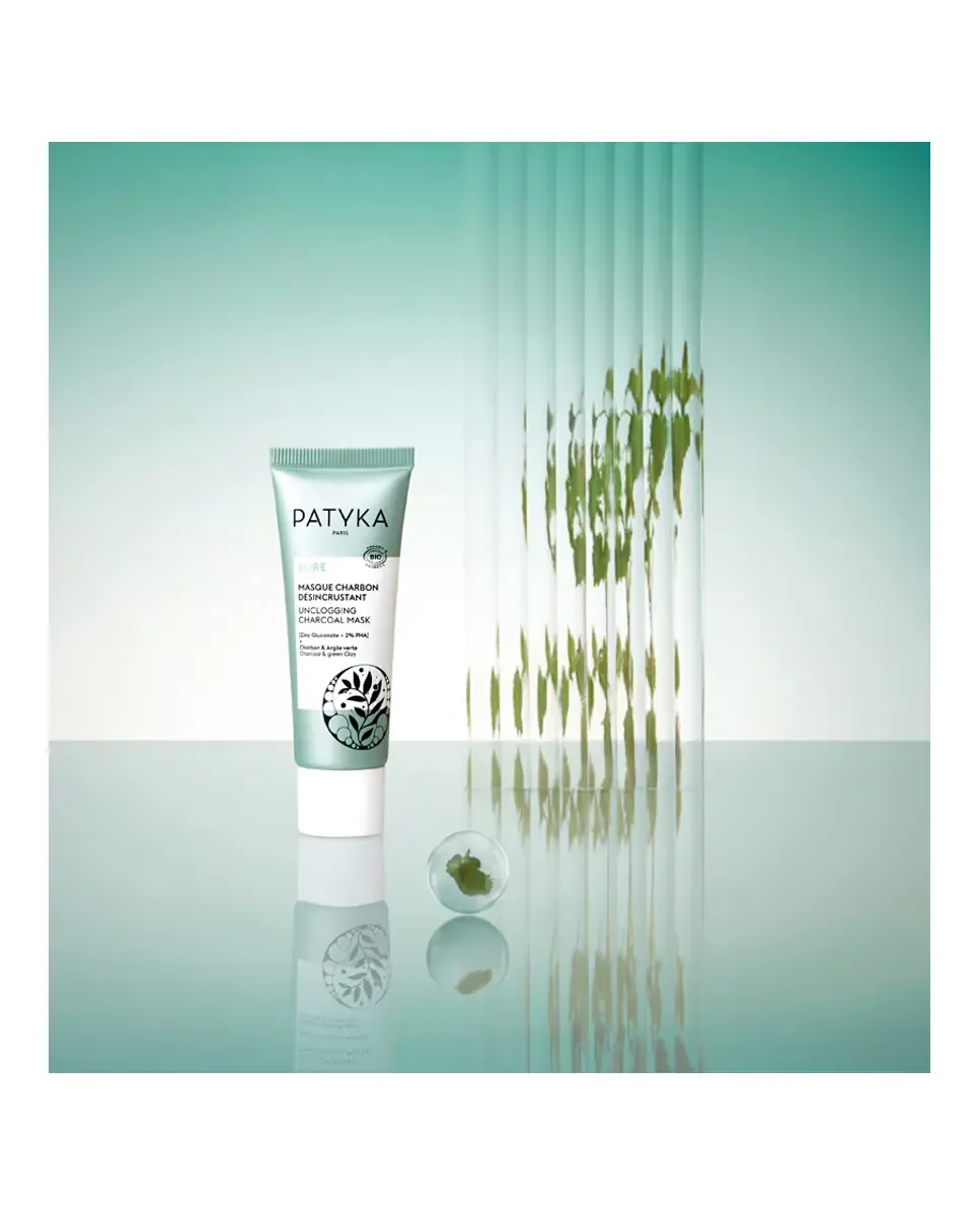 Маска для удаления угля от Patyka является детоксикирующим средством, которое очищает кожу и очищает поры. Она разработана для кожи с акне и содержит глюконат цинка, PHA и экстракт органической мелиссы, которые обладают антистрессовыми и матирующими свойствами. Действует на семь типов несовершенств, помогая уменьшить их проявление и предотвратить их появление, а также впитывает избыточный кожный жир. Представлена в формате 50 мл и является унисекс продуктом, рекомендуется использовать 1-2 раза в неделю.
