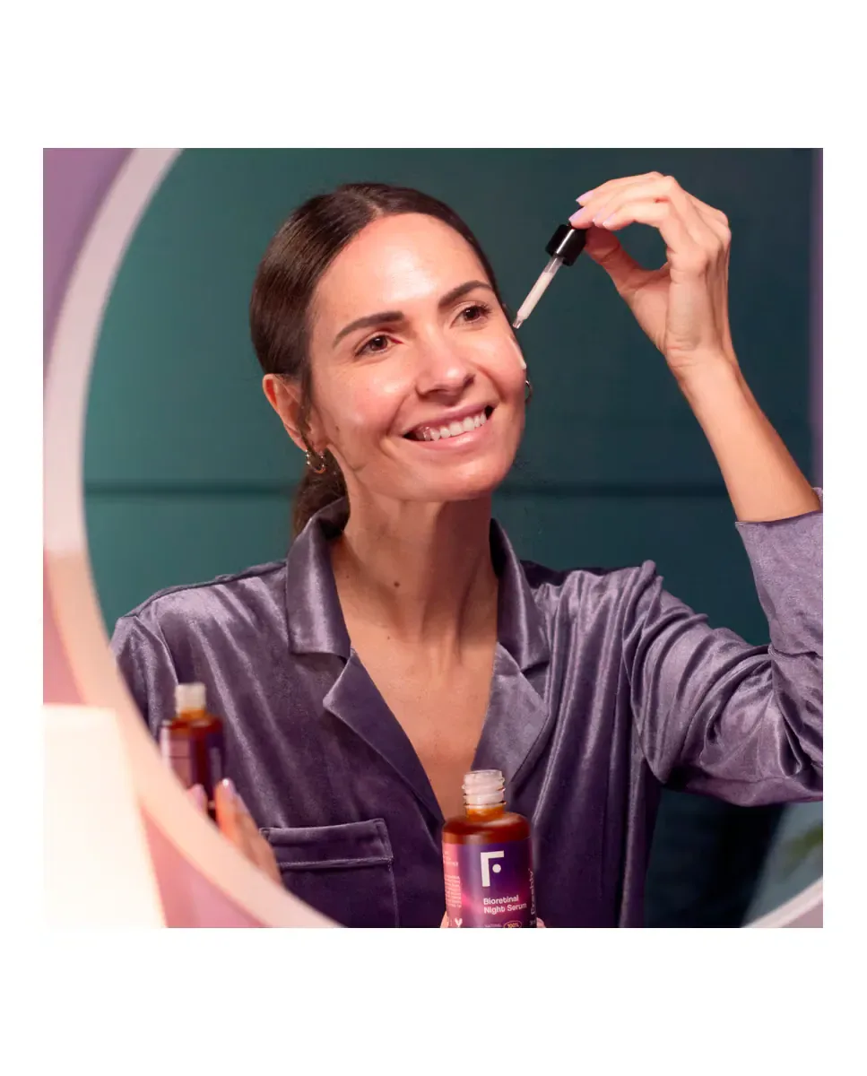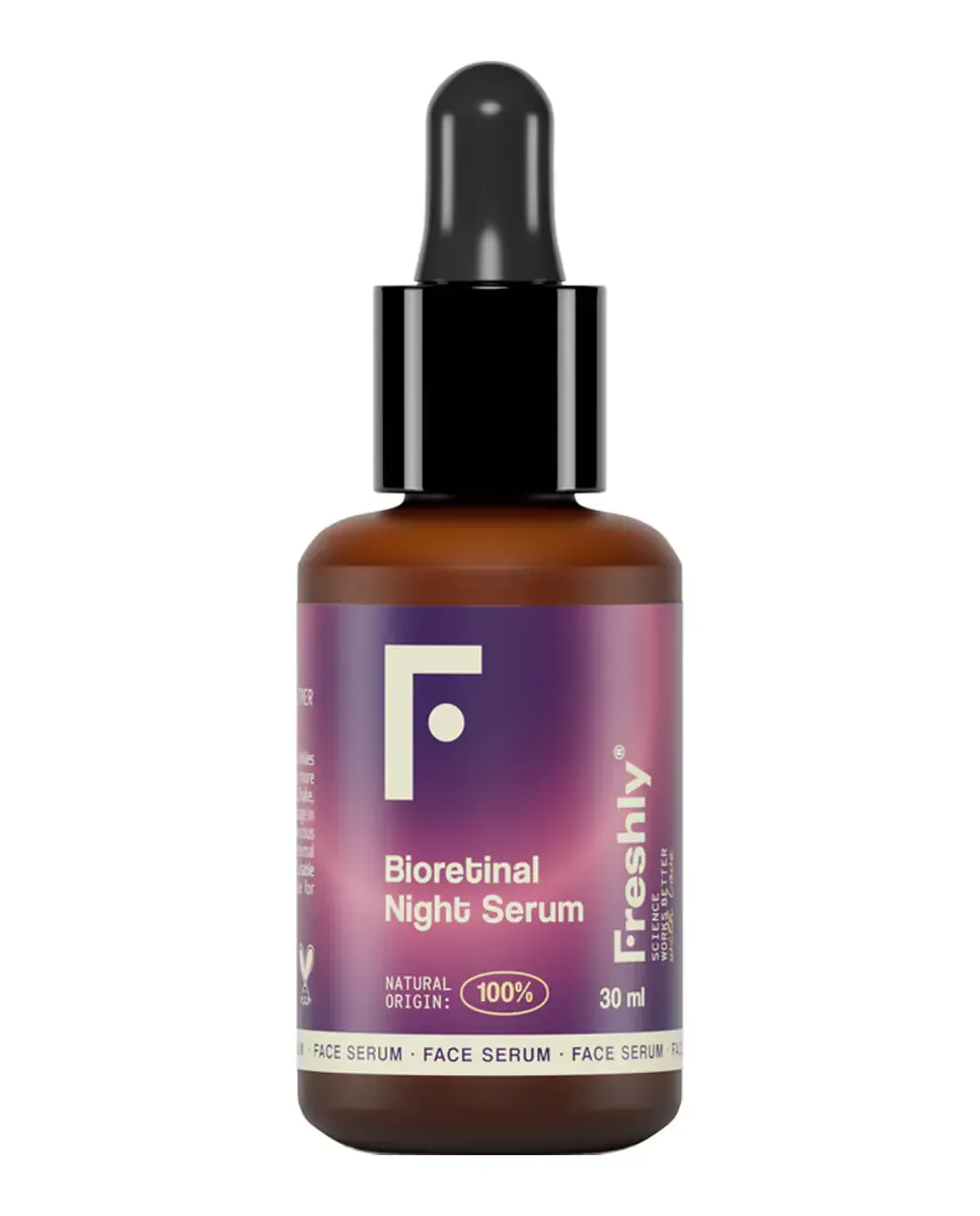 Ночной сыворотка Bioretinal от Freshly Cosmetics - это средство, которое уменьшает морщины и следы акне. Она разработана с использованием биотехнологического ретиноида, который действует в 11 раз быстрее обычного ретинола. Эта сыворотка подходит для всех типов кожи и может использоваться и мужчинами, и женщинами. Она ускоряет обновление клеток и увеличивает синтез коллагена, способствуя появлению более упругой, гладкой, эластичной и ровной кожи. В ее формуле содержатся различные виды веганской гиалуроновой кислоты, что усиливает ее эффективность, влияя на дерму и эпидермис. Содержит концентрацию ретиналя 0,16%, обладающую противовоспалительными и антибактериальными свойствами, поэтому подходит для чувствительной кожи. Рекомендуется наносить ее вечером после очищения лица и перед увлажнением, используя 3-4 капли, которые мягко распределяются по лицу.