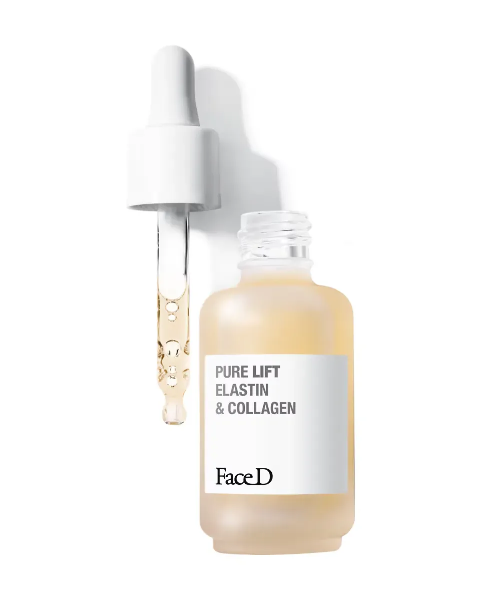 Pure Lift Elastina и Коллаген от Face D - это сыворотка красоты, которая подходит для всех типов кожи и является унисекс. Она содержит концентрированные чистые активные ингредиенты эластин и коллаген. Эластин способствует структуре кожной ткани, в то время как коллаген повышает плотность кожи и стимулирует обновление ее матрицы. Этот продукт помогает минимизировать уже существующие морщины и предотвращает образование новых. Его применение обеспечивает немедленное улучшение упругости и подтягивает контуры лица. При постоянном использовании он переопределяет овал лица и уменьшает видимость морщин, оставляя лицо более расслабленным. Исследования показывают, что 43% пользователей отметили более подтянутую кожу после одного применения, а 58% ощутили уплотнение кожи в течение двух месяцев. Рекомендуется наносить несколько капель на чистое и сухое лицо, выполняя круговые движения от центра к периферии, включая шею.