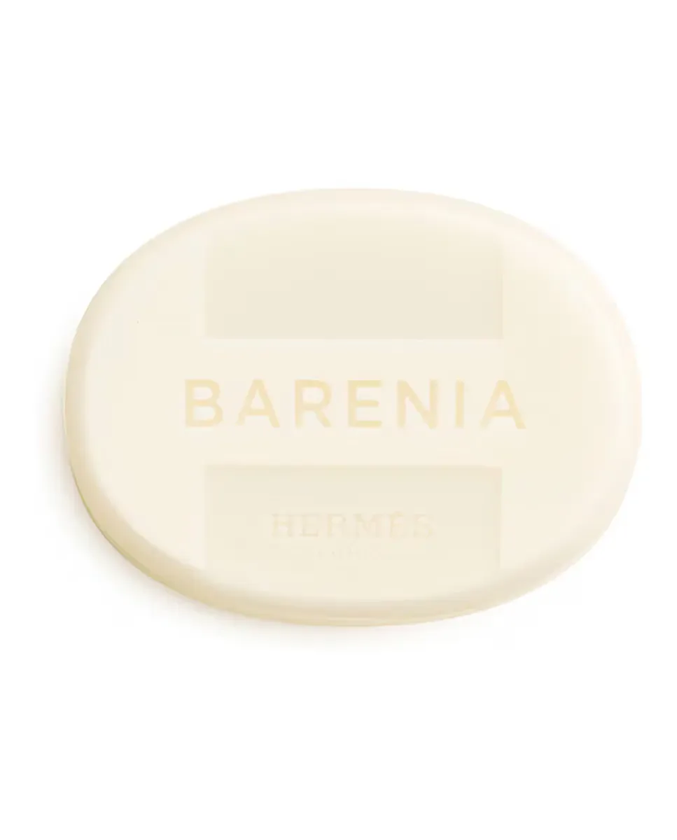 Парфюмированное мыло Barénia от Hermès - это косметический продукт, который сочетает очистку и аромат. Оно вдохновлено Eau de parfum Barénia и образует обильную пену, которая ухаживает за кожей и дарит аромат. Его овальная форма, украшенная фирменной буквой H, обеспечивает удобный захват при использовании. Ароматические ноты включают ирис бабочку, чудесную ягоду, дубовую древесину и пачули, создавая сочетание, которое передает силу и нежность.