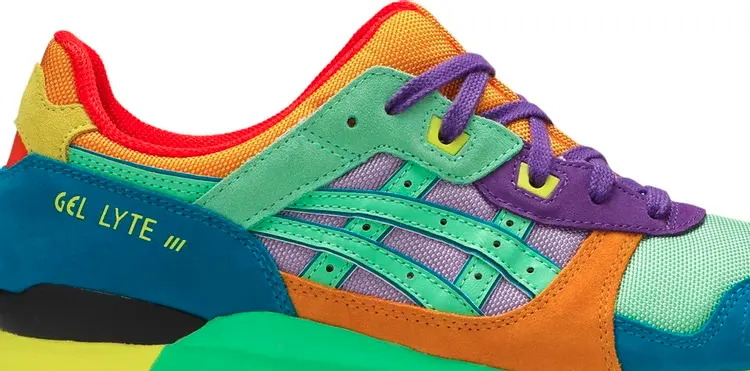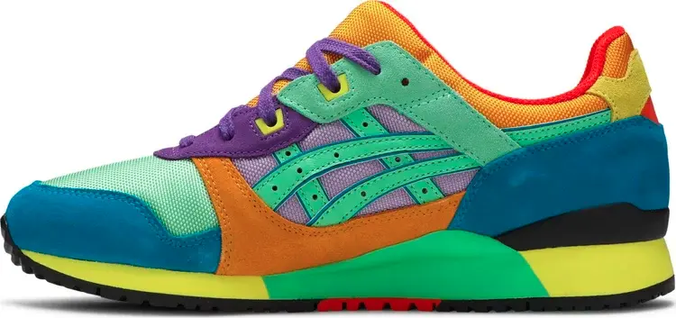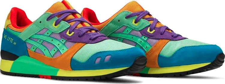 Кроссовки ASICS Gel Lyte 3 OG «Day Lyte Pack», выпущенные в рамках яркого «Day Lyte Pack», украшают ретро-бегуна контрастным сочетанием привлекательных оттенков. Верх выполнен из фиолетовой и светло-зеленой сетки с замшевыми накладками бирюзового и оранжевого цветов. Фирменная конструкция кроссовок с разделенным язычком, которая первоначально дебютировала на Gel-LD Racer, имеет оранжевую внешнюю сетку и огненно-малиновую подкладку внутри. Подошва из пеноматериала с цветными блоками и амортизирующим гелем в области пятки для защиты от ударов и плавного хода.