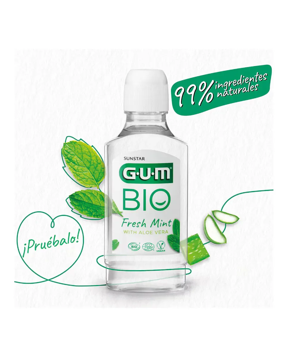 Ополаскиватель для рта GUM BIO разработан с использованием 99% натуральных ингредиентов, включая органическое алоэ вера и мяту. Обеспечивает мягкую и приятную гигиену полости рта. Органическая мята дарит освежающий вкус. Алоэ вера способствует здоровью десен благодаря своим антибактериальным и противовоспалительным свойствам. Содержит фтор, который помогает защищать зубы от кариеса и укреплять зубную эмаль. Имеет органические сертификаты Ecocert Greenlife и Cosmebio, а также веганский сертификат. Рекомендуется использовать ежедневно для дополнения чистки полости рта.
